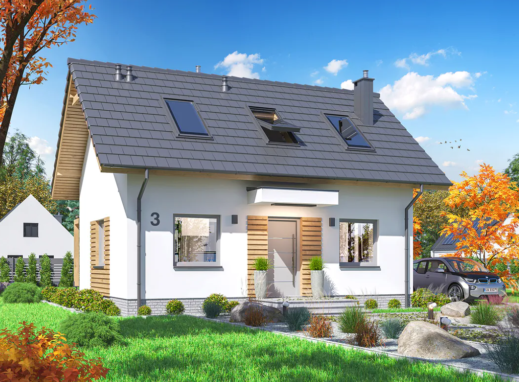 Stosunkowo niewielki dom może być atrakcyjnie wykończony nie tylko w środku. Elewację budynku można bowiem wykończyć zarówno w tradycyjnym, jak i nowoczesnym stylu. Dzięki temu może być ona dostosowana do innych zabudowań w okolicy.