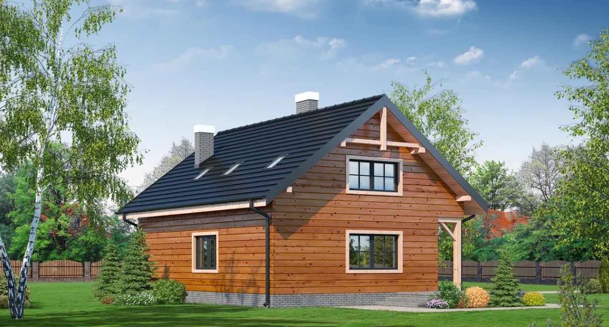 Projekt domu w technologii drewnianej szkieletowej.