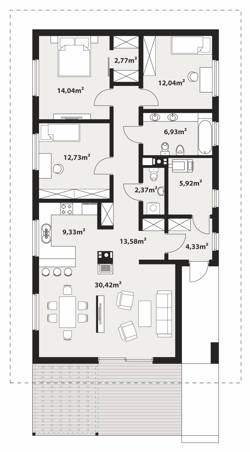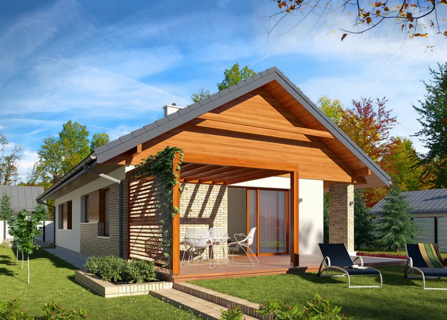 Galeria zdjęć Więcej zdjęć Opis projektu Inwestycja obejmowała wybudowanie domu szkieletowego parterowego o metrażu 117,55 m2 w Zabytkowie. Projekt domu zakładał 3 pokoje i łazienkę....