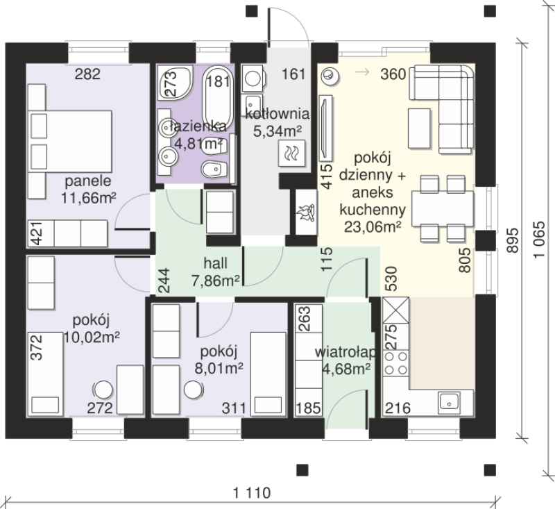 Galeria zdjęć Więcej zdjęć Opis projektu Inwestycja obejmowała wybudowanie domu szkieletowego parterowego o metrażu 117,55 m2 w Zabytkowie. Projekt domu zakładał 3 pokoje i łazienkę....
