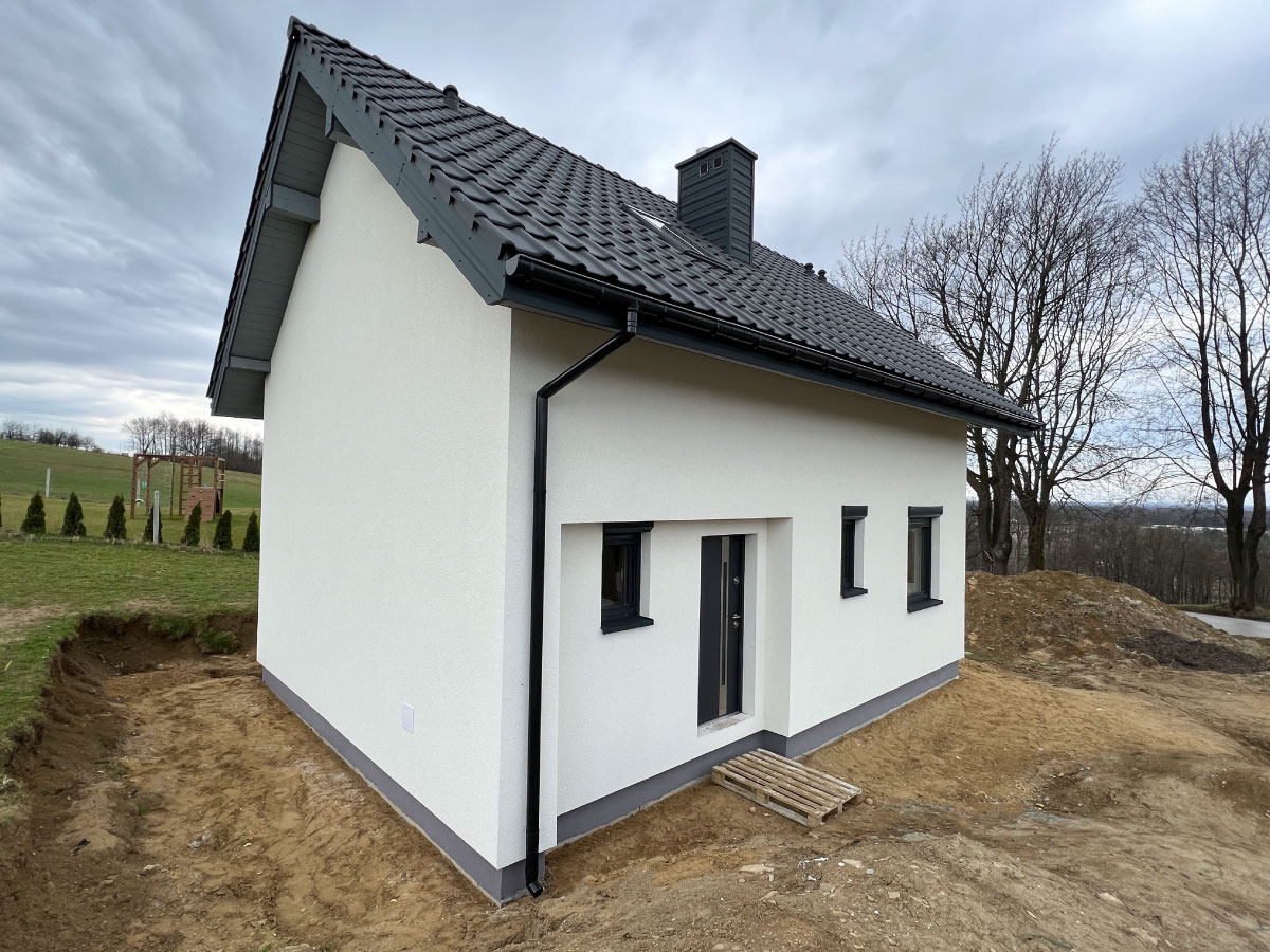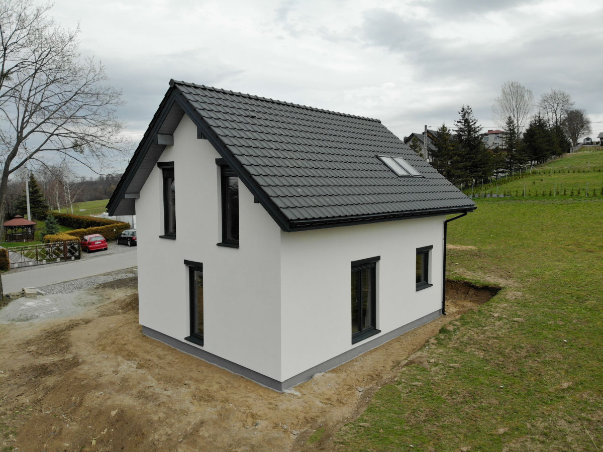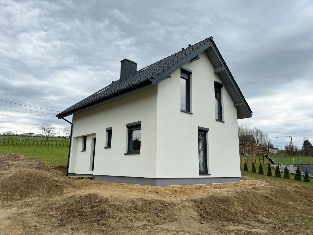 Galeria zdjęć Więcej zdjęć Opis projektu Inwestycja obejmowała wybudowanie domu szkieletowego parterowego o metrażu 117,55 m2 w Zabytkowie. Projekt domu zakładał 3 pokoje i łazienkę....