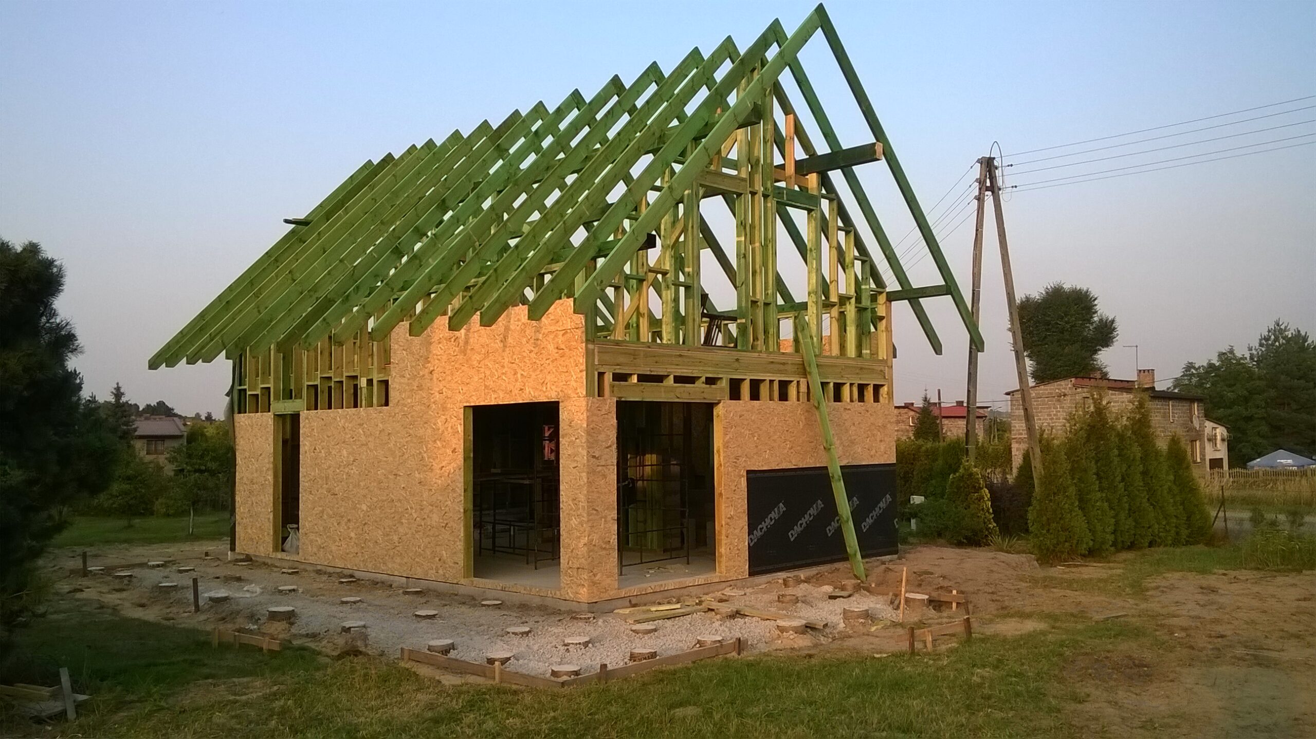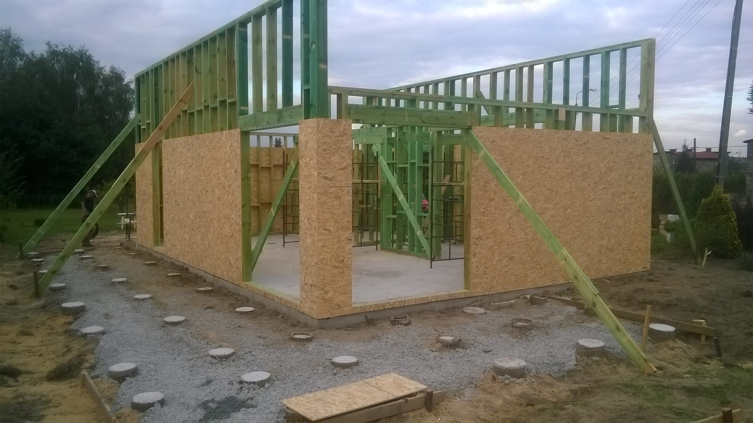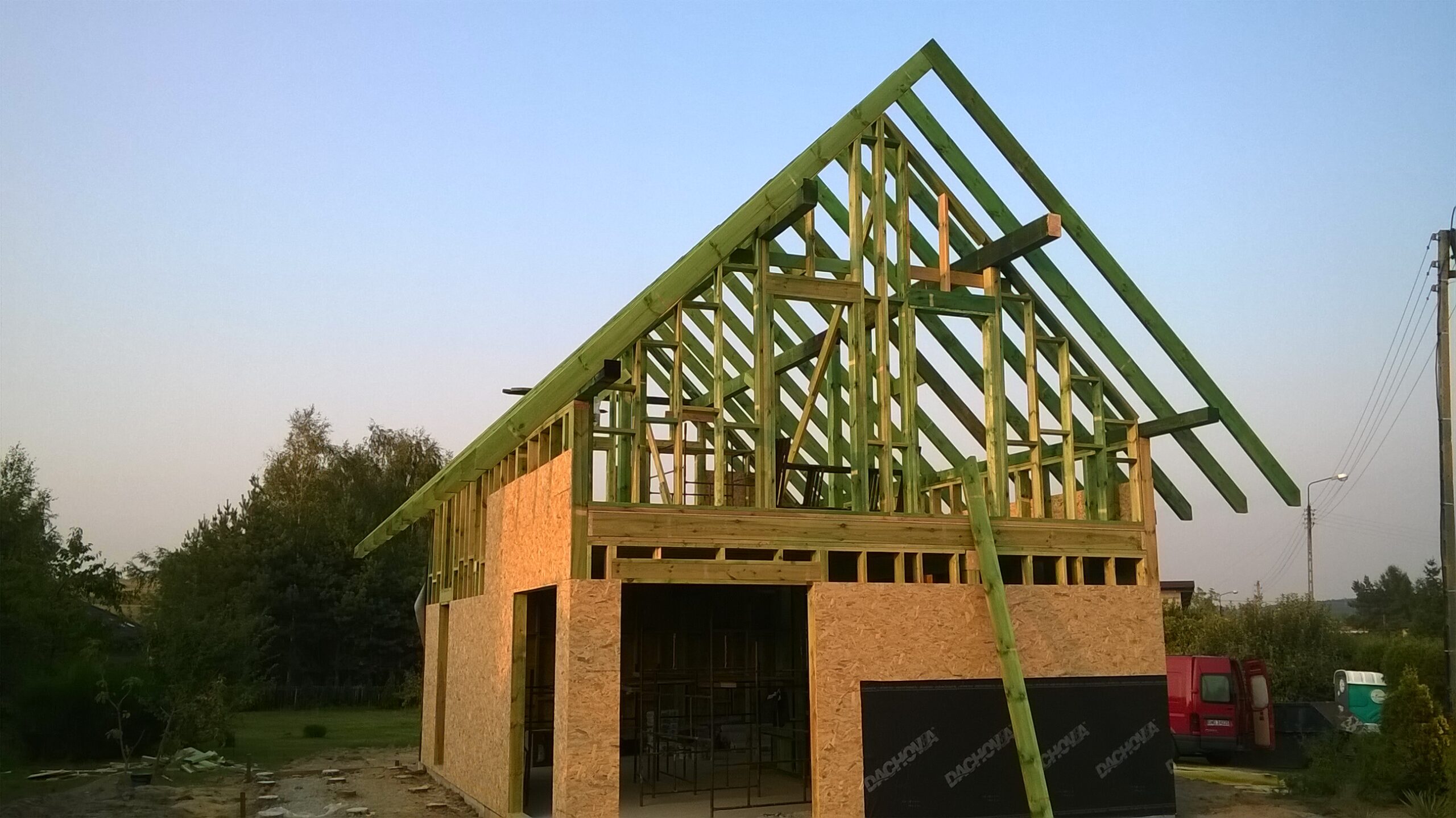 Inwestycja obejmowała wybudowanie domu szkieletowego piętrowego o metrażu 97m2 w miejscowości Imielin. Projekt domu zakładał 3 pokoje i 2 łazienki. Budowę domu zakończyliśmy w roku 2016 w stanie surowym otwartym. Inwestycja wzorowana na wzór projektu indywidualnego.