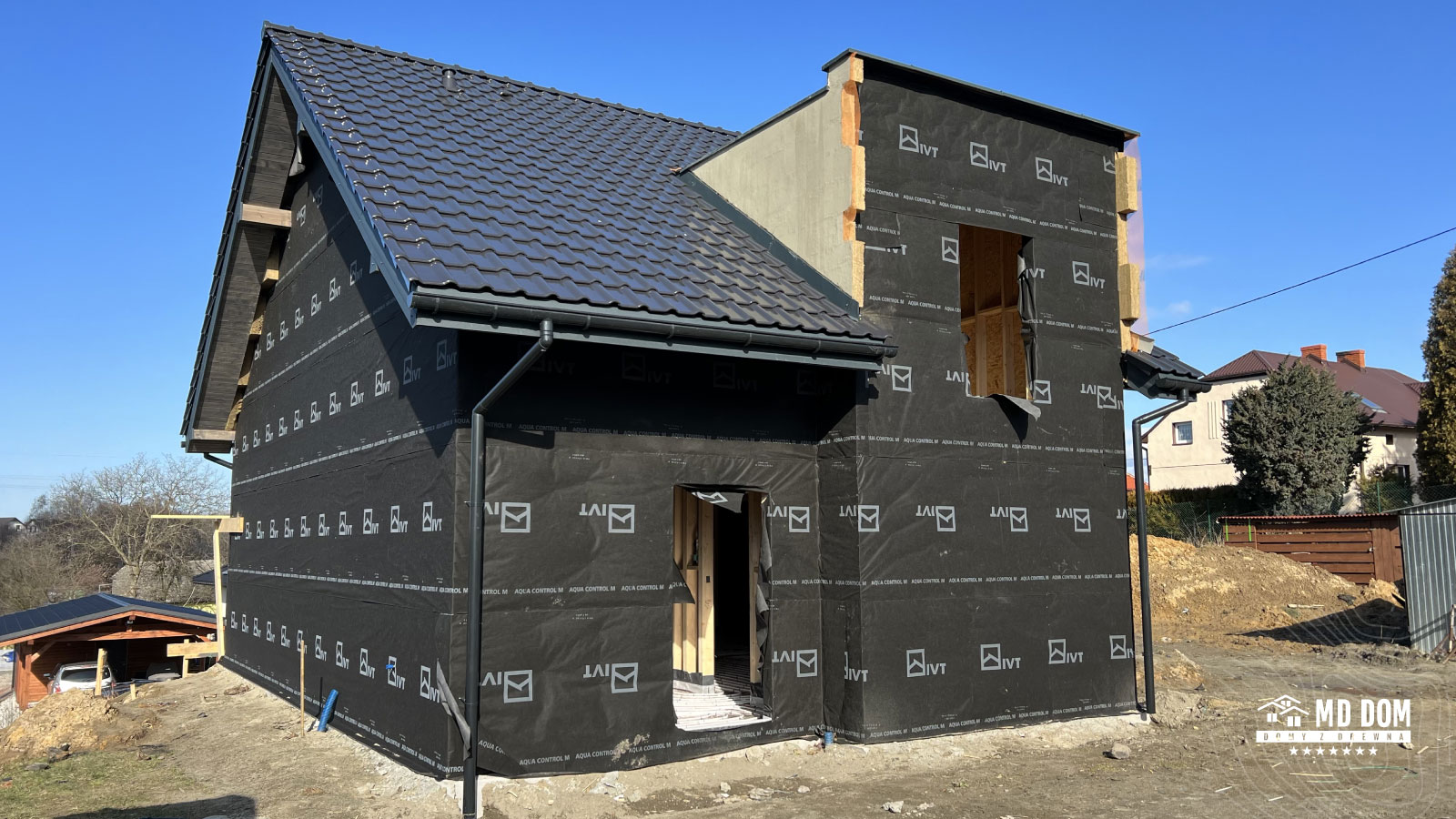 udowa domu jednorodzinnego w technologii szkieletowej w Jastrzębiu-Zdroju na wzór projektu Emil o powierzchni użytkowej netto 111,9 m2.