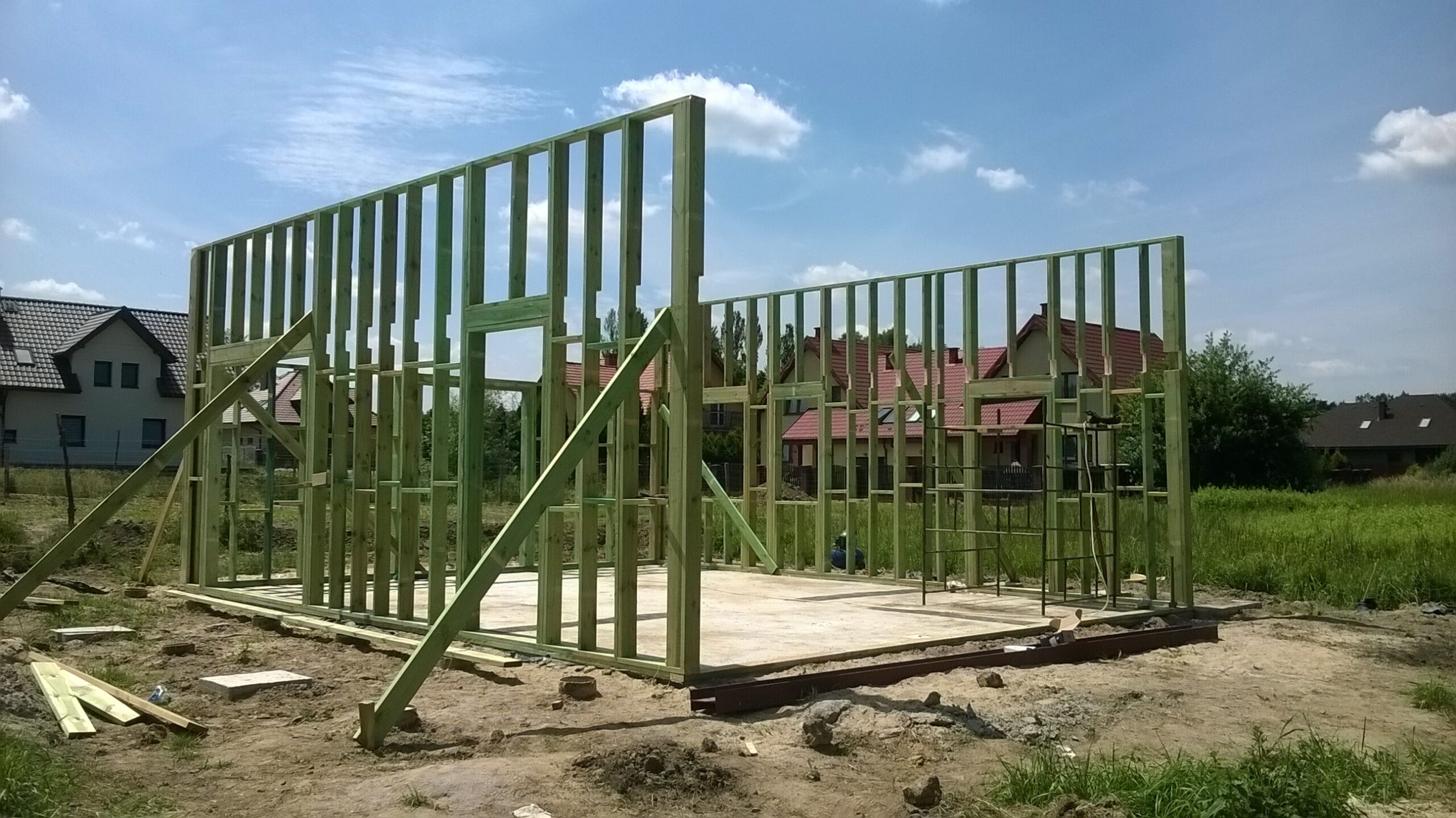 Inwestycja obejmowała wybudowanie domu szkieletowego piętrowego o metrażu 110m2 w miejscowości Mysłowice. Projekt domu zakładał 3 pokoje i 2 łazienki. Budowę domu zakończyliśmy w roku 2014 w stanie surowym otwartym. Inwestycja wzorowana na wzór projektu indywidualnego.