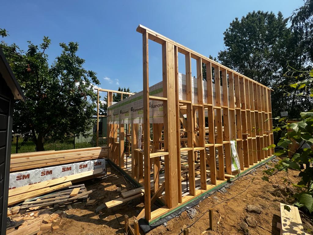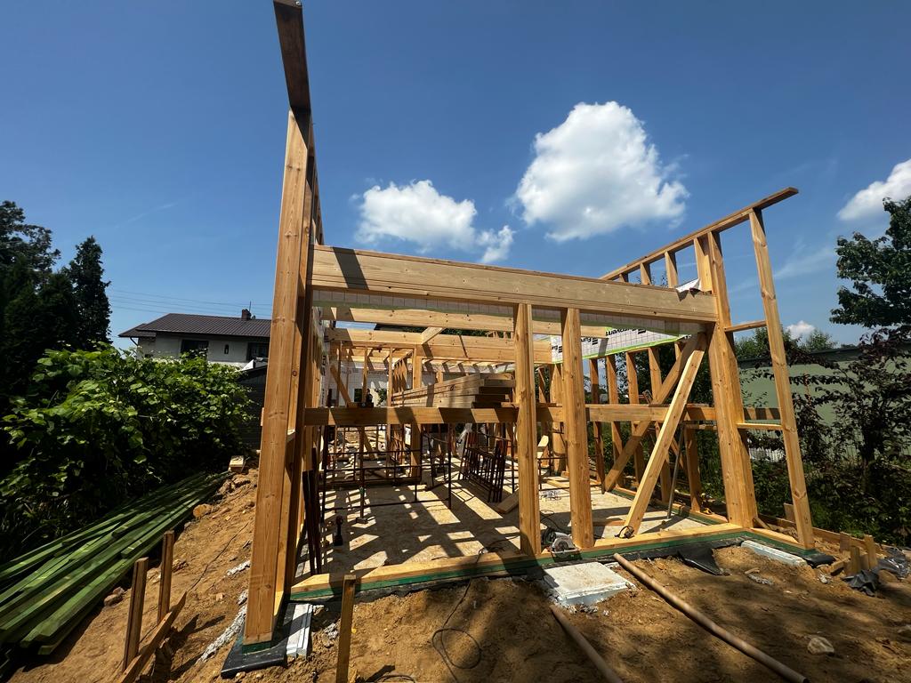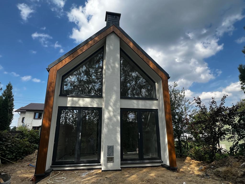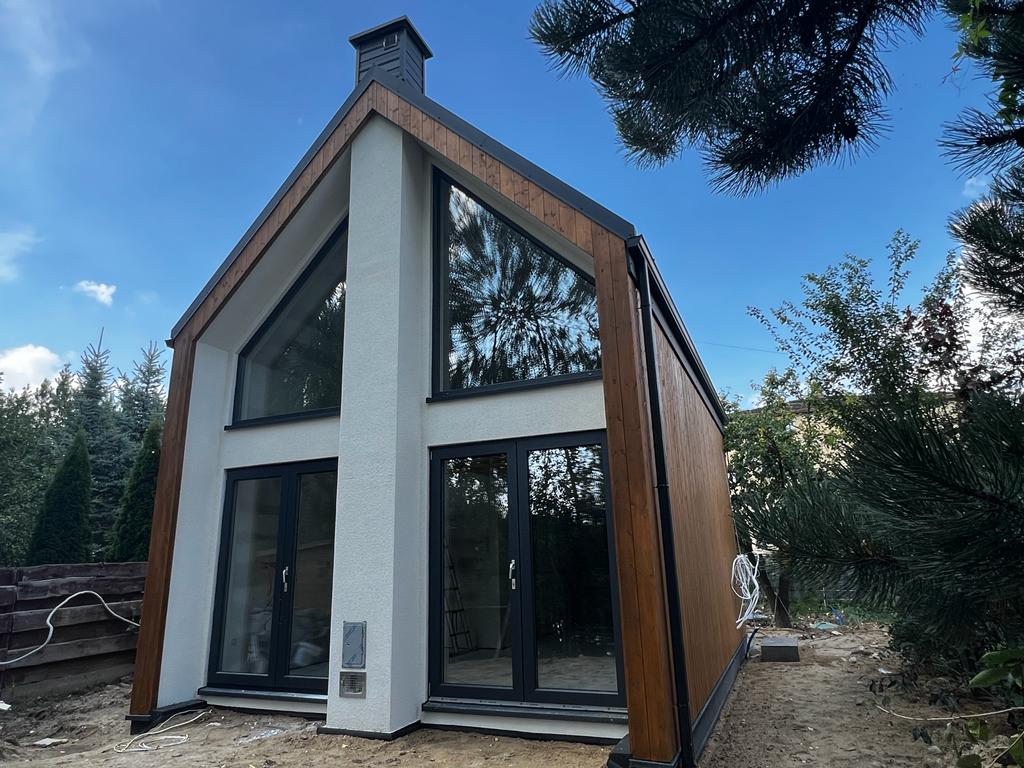 Galeria zdjęć Więcej zdjęć Opis projektu Inwestycja obejmowała wybudowanie domu szkieletowego parterowego o metrażu 100m2 w miejscowości Katowice. Projekt domu zakładał 2 pokoje i łazienkę....