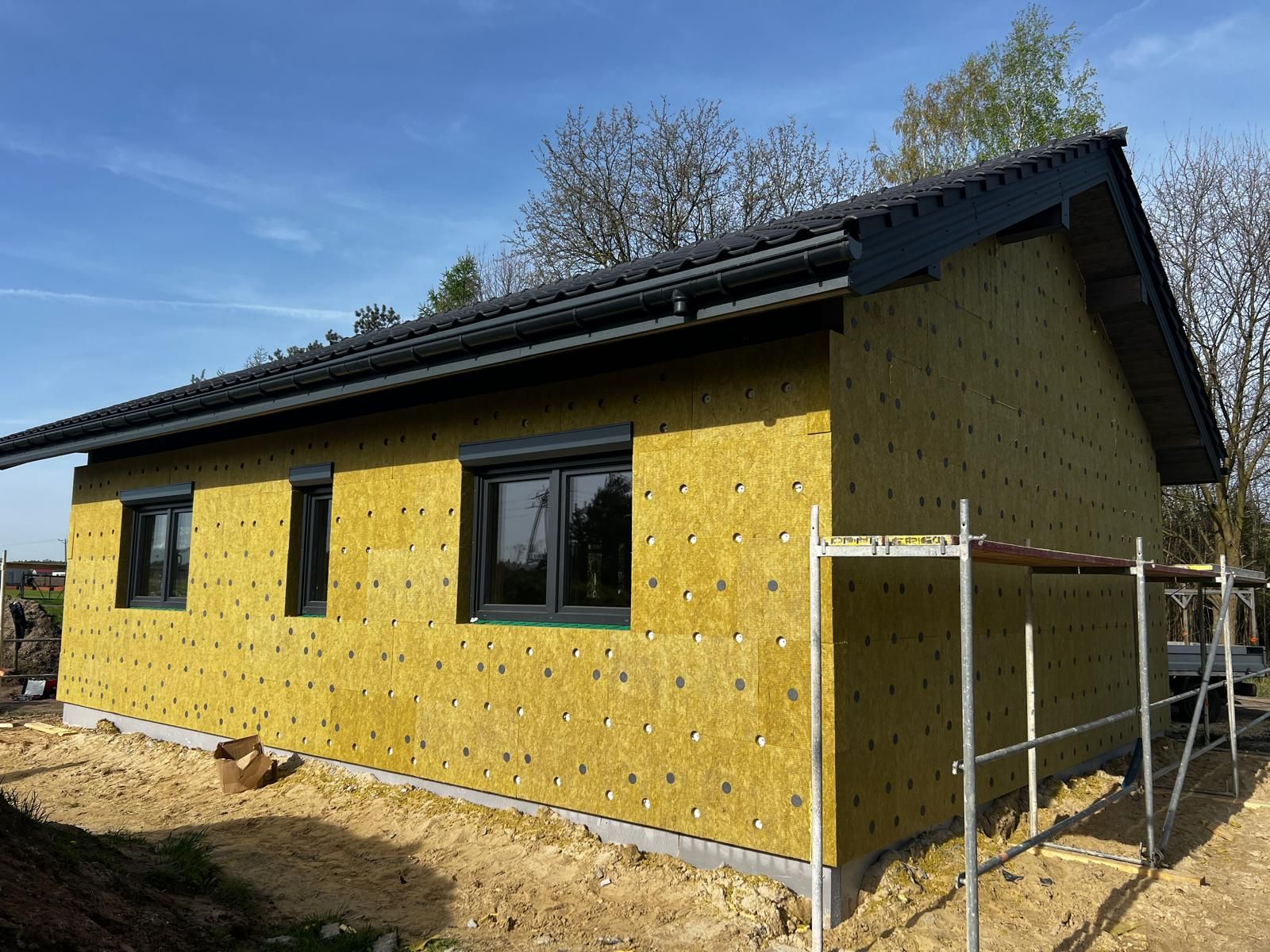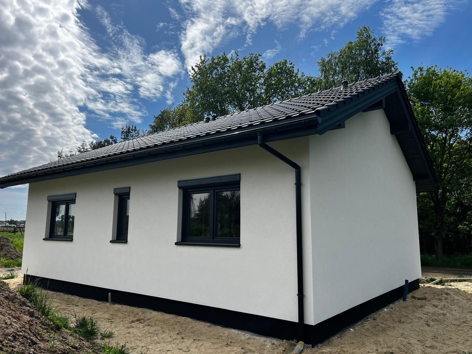 Galeria zdjęć Więcej zdjęć Opis projektu Inwestycja obejmowała wybudowanie domu szkieletowego parterowego o metrażu 117,55 m2 w Zabytkowie. Projekt domu zakładał 3 pokoje i łazienkę....