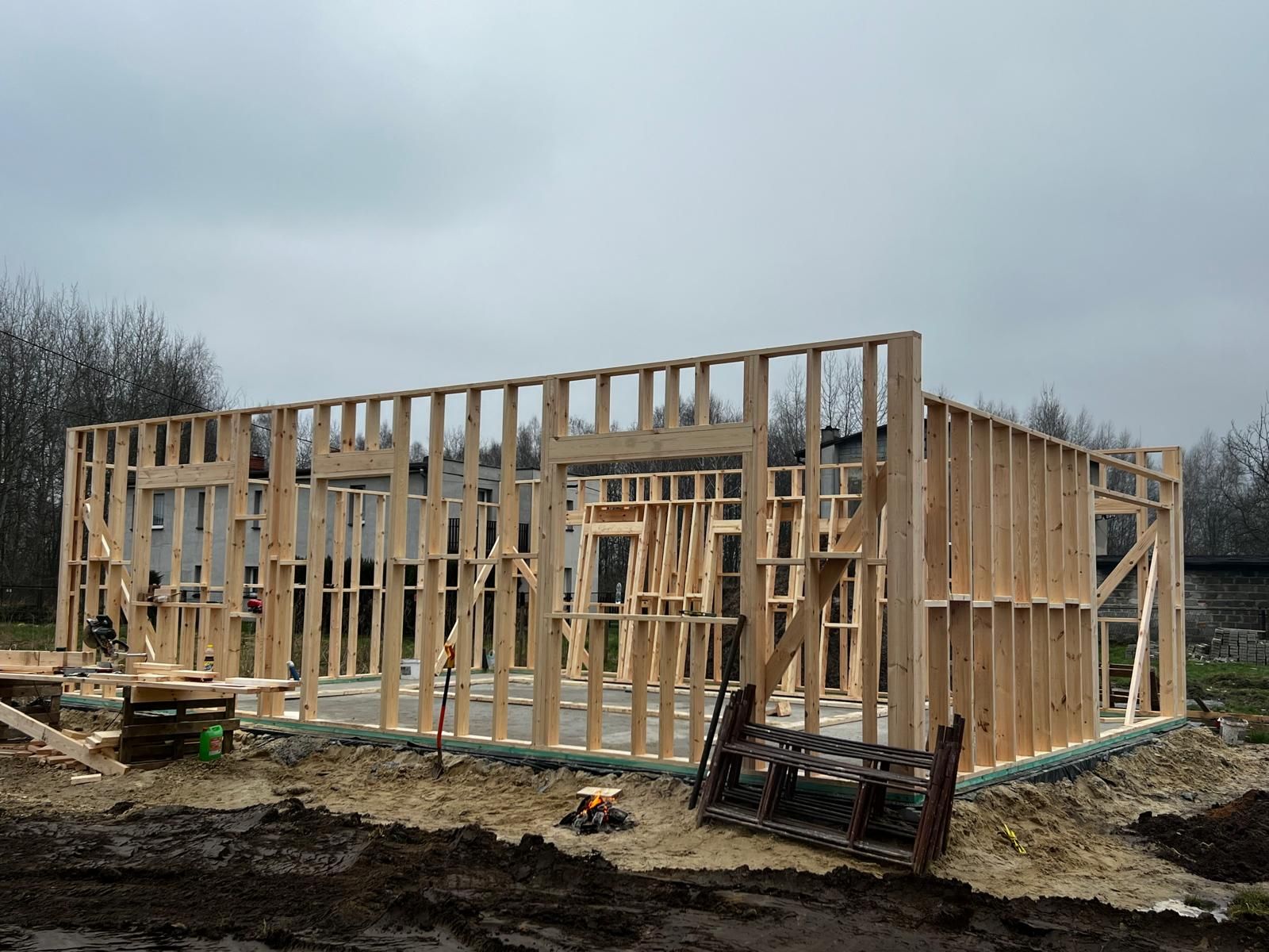 Galeria zdjęć Więcej zdjęć Opis projektu Inwestycja obejmowała wybudowanie domu szkieletowego parterowego o metrażu 100m2 w miejscowości Katowice. Projekt domu zakładał 2 pokoje i łazienkę....