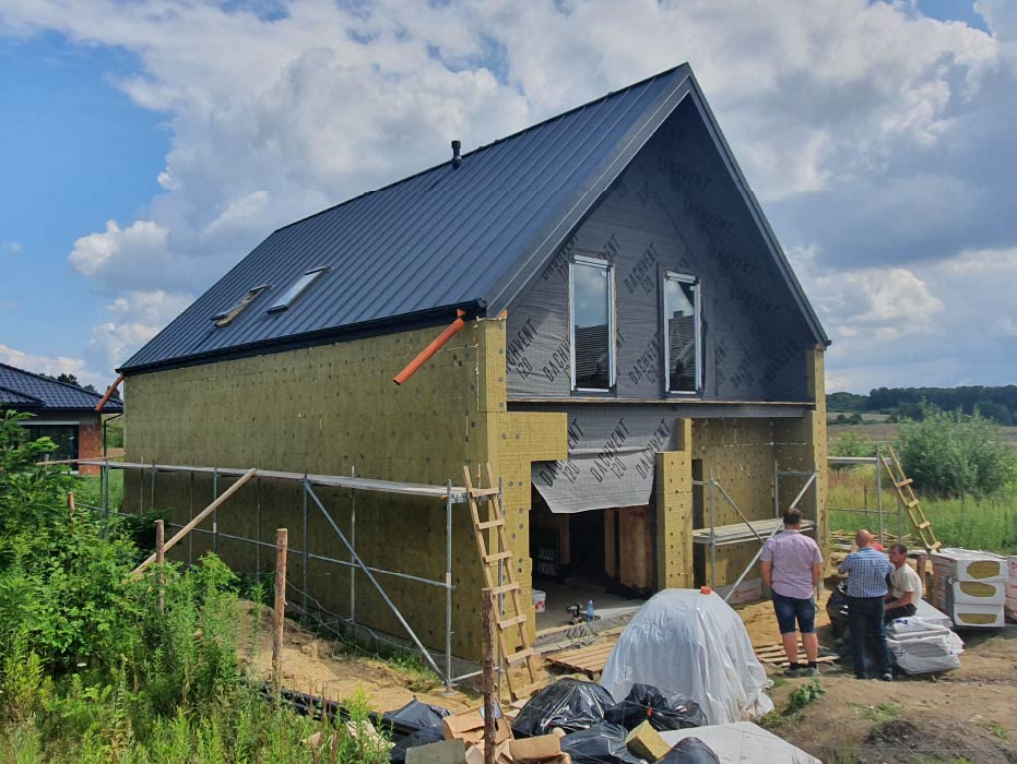 Galeria zdjęć Więcej zdjęć Opis projektu Inwestycja obejmowała wybudowanie domu szkieletowego parterowego o metrażu 117,55 m2 w Zabytkowie. Projekt domu zakładał 3 pokoje i łazienkę....