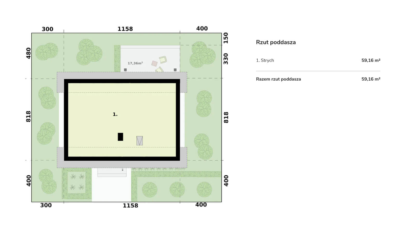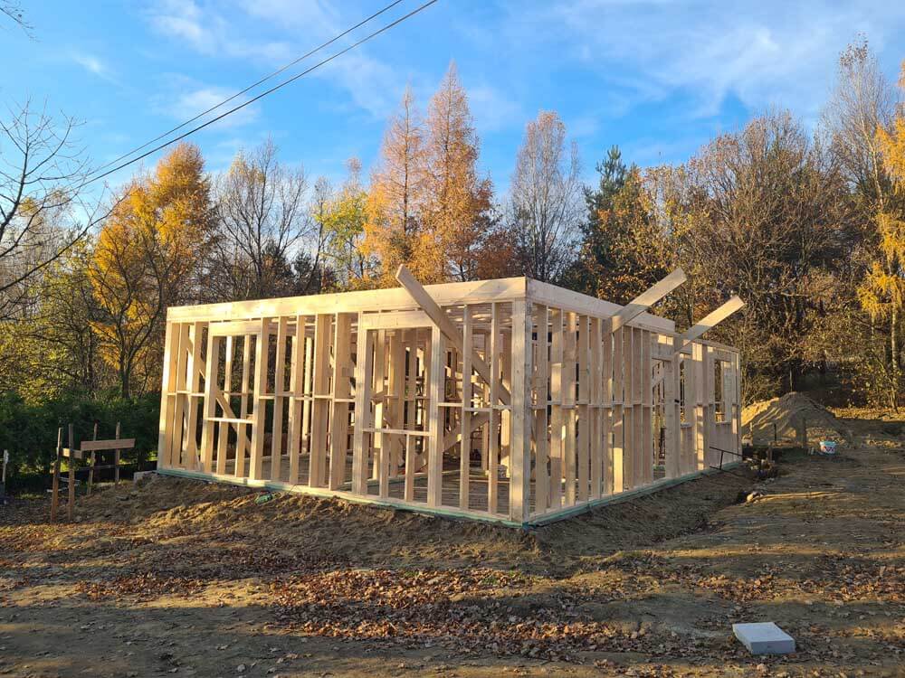 Inwestycja obejmowała wybudowanie domu szkieletowego parterowego o metrażu 76,5m2 w miejscowości Skrzyszów. W prezentowanym projekcie jest możliwość adaptacji poddasza, które ma ponad 50m2 powierzchni.