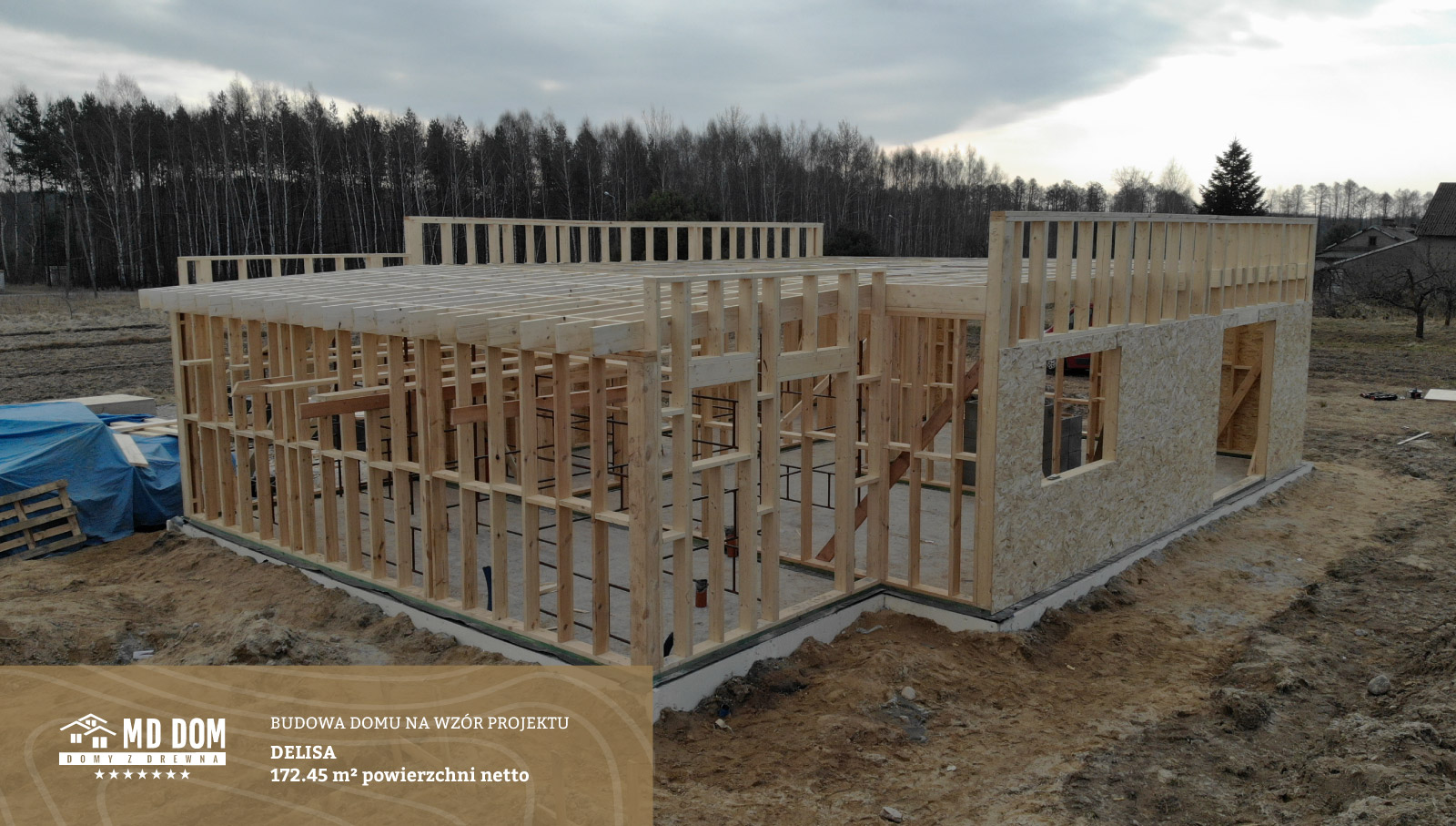 Prezentujemy realizację domu szkieletowego w woj. Mazowieckim. Budowa domu jednorodzinnego w miejscowości Werdun pod Warszawą była wzorowana projektem Delisa o powierzchni użytkowej netto 172,45 m2 .