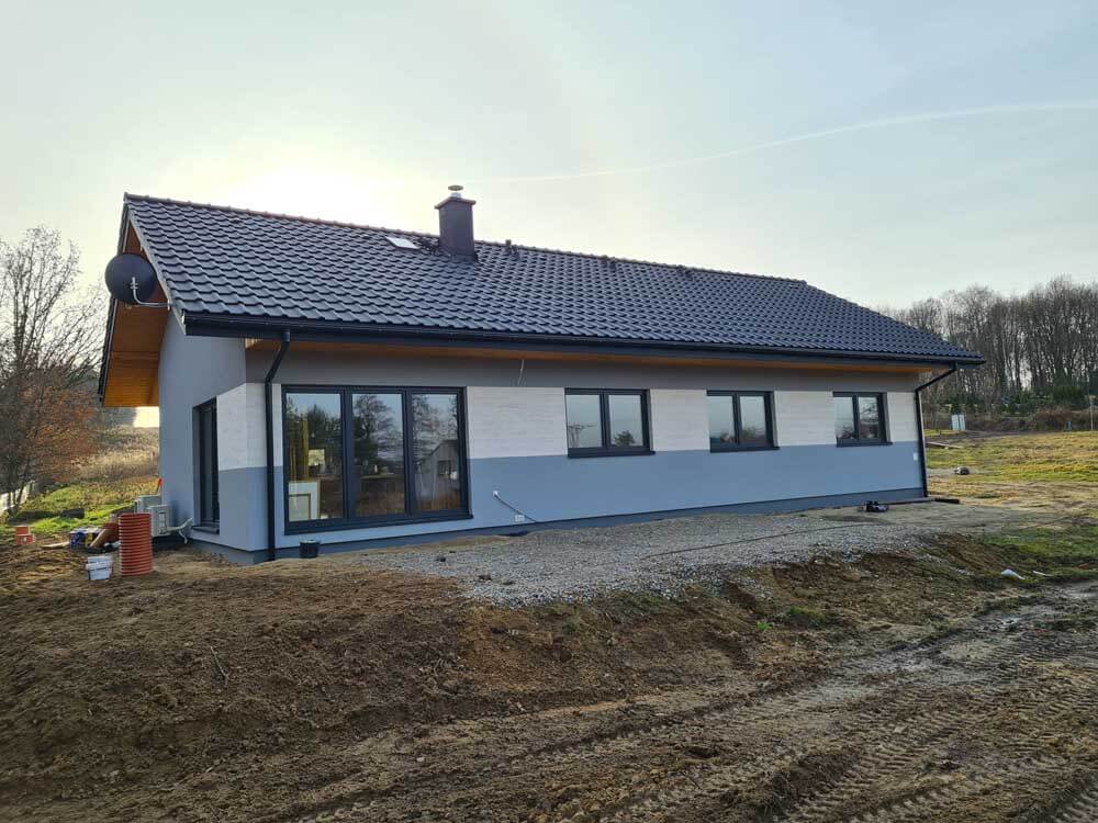 Inwestycja obejmowała wybudowanie domu szkieletowego parterowego o metrażu 104,26m2 w miejscowości Wodzisław Śląski. Projekt domu zakładał 3 pokoje i łazienkę. Budowę domu zakończyliśmy w roku 2020 w stanie deweloperskim. Inwestycja wzorowana na wzór projektu Bono drewniany.