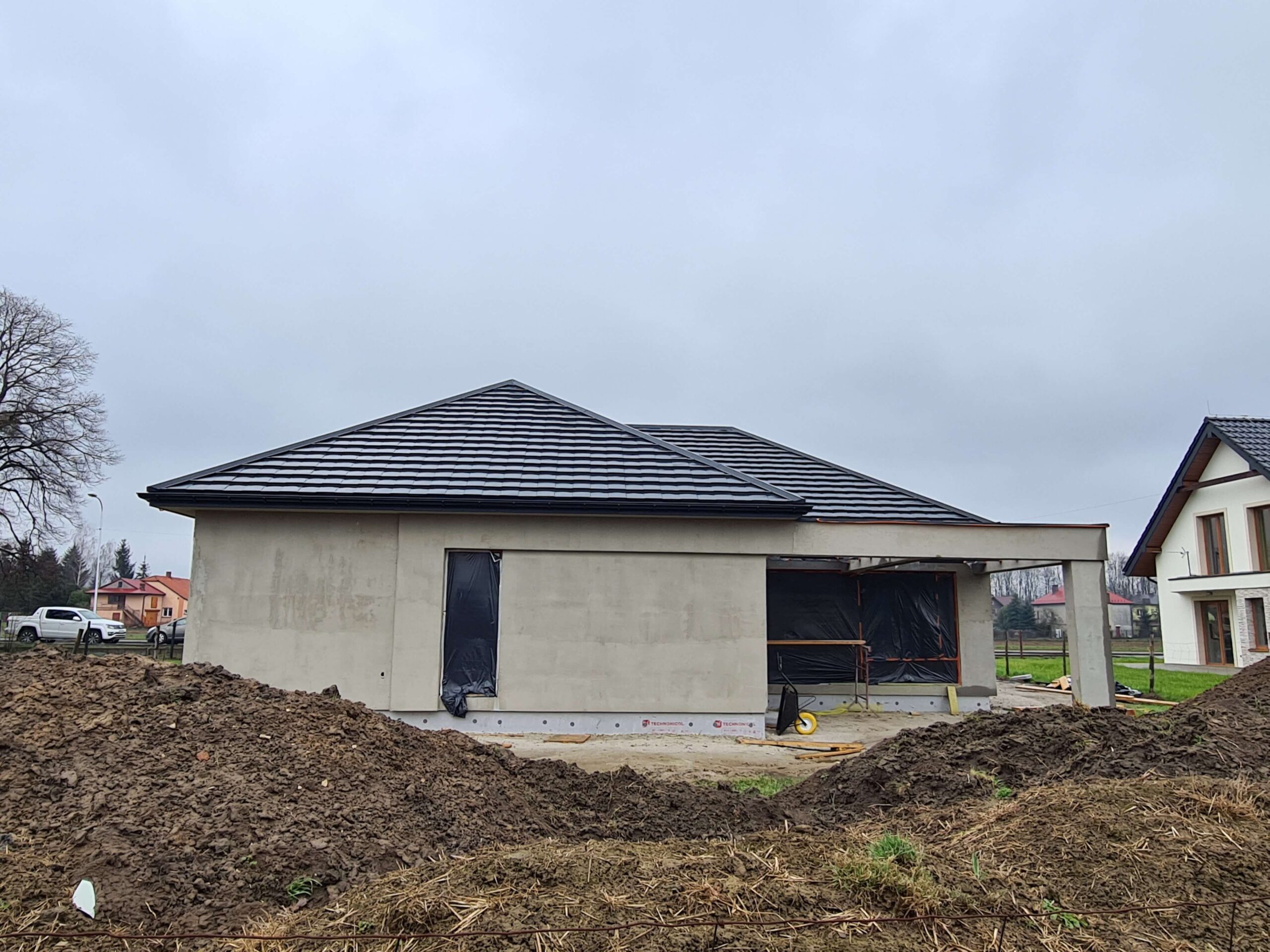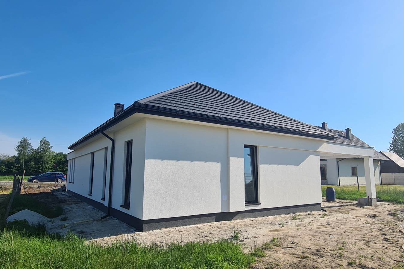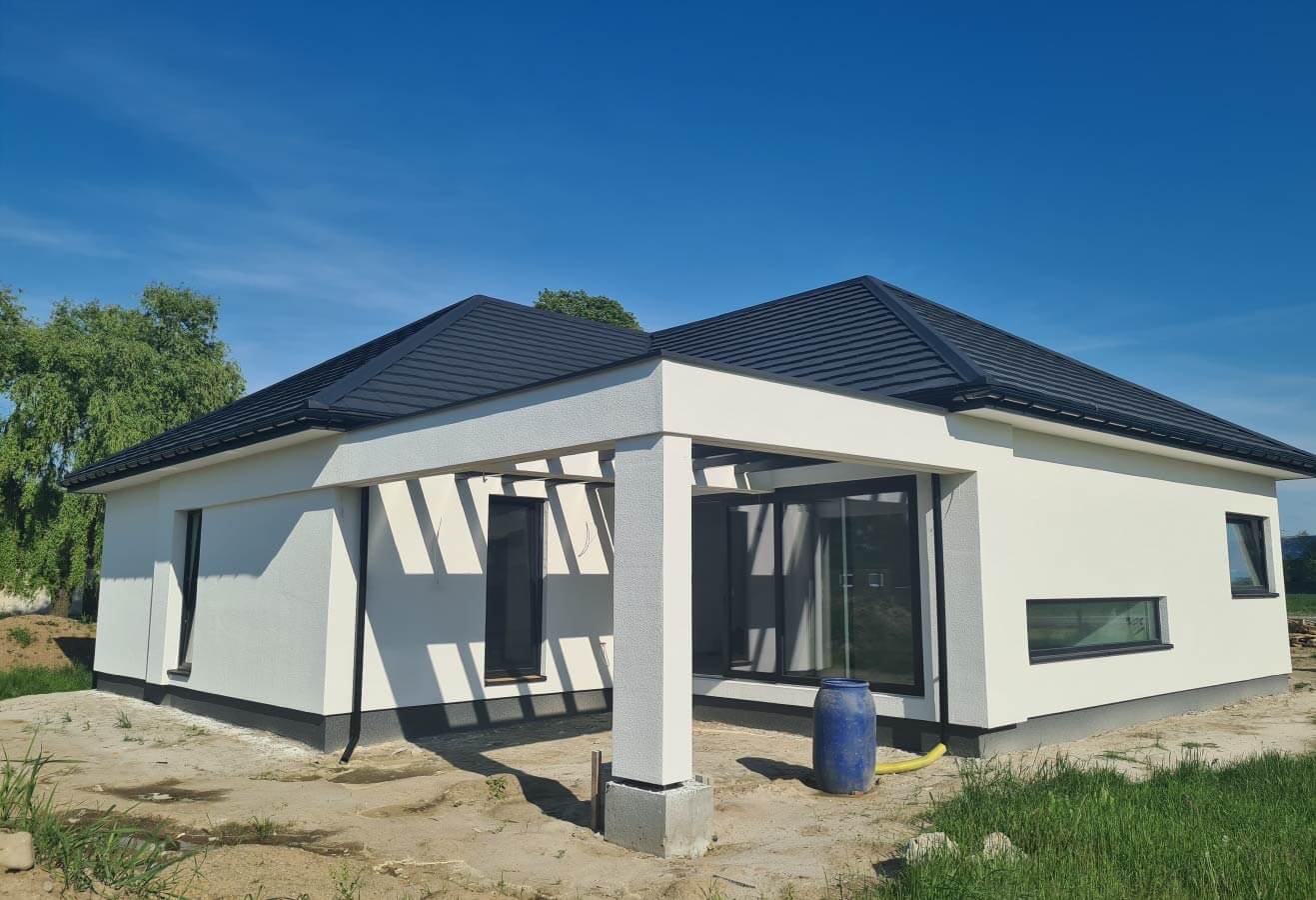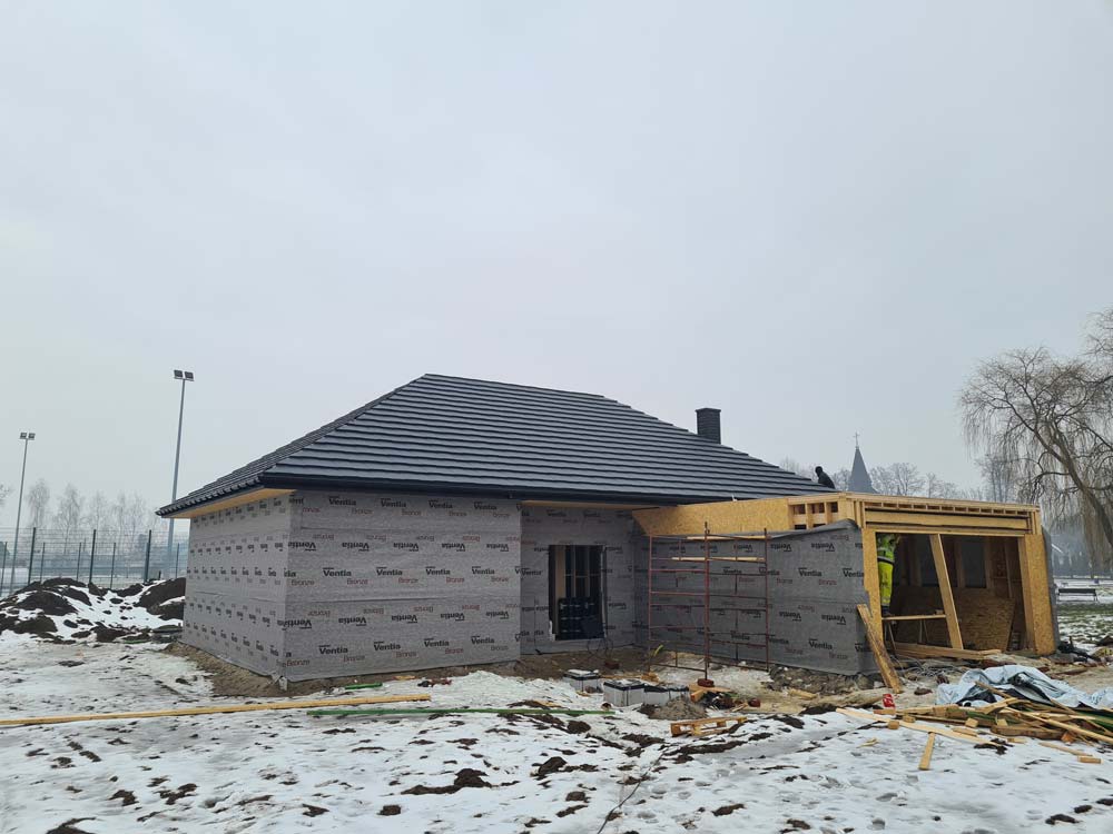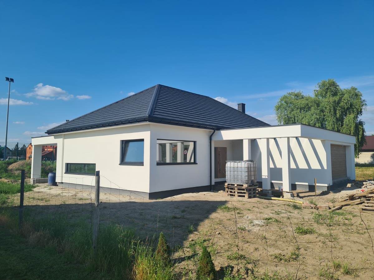 Inwestycja obejmowała wybudowanie domu szkieletowego parterowego o metrażu 177,89m2 w miejscowości Zator. Projekt domu zakładał 3 pokoje, łazienkę i garaż dwustanowiskowy. Budowę domu zakończyliśmy w roku 2020 w stanie deweloperskim. Inwestycja wzorowana na wzór projektu Homekoncept 31.