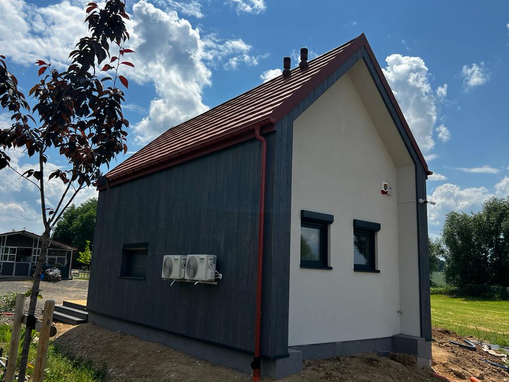 Galeria zdjęć Więcej zdjęć Opis projektu Inwestycja obejmowała wybudowanie domu szkieletowego parterowego o metrażu 52,74m2 w miejscowości Tworóg. Projekt domu zakładał 3 pokoje i łazienkę....