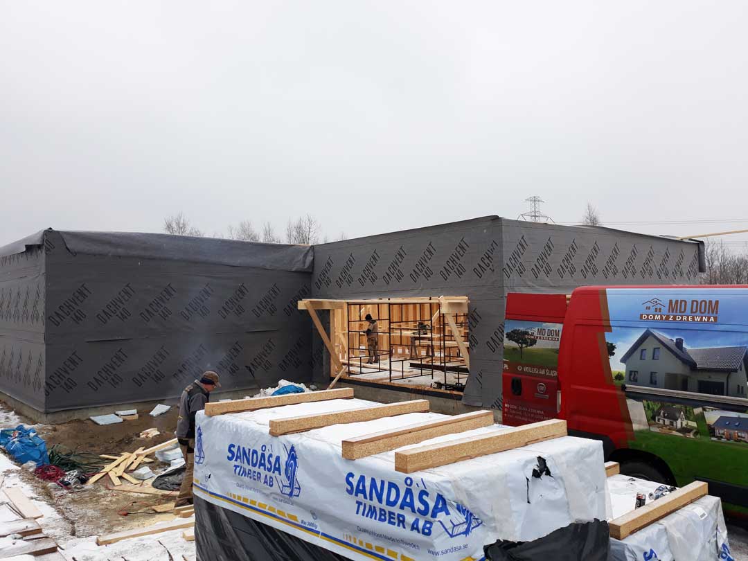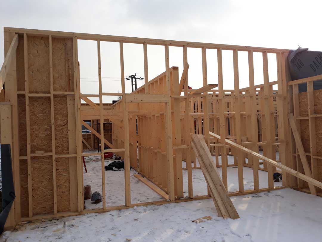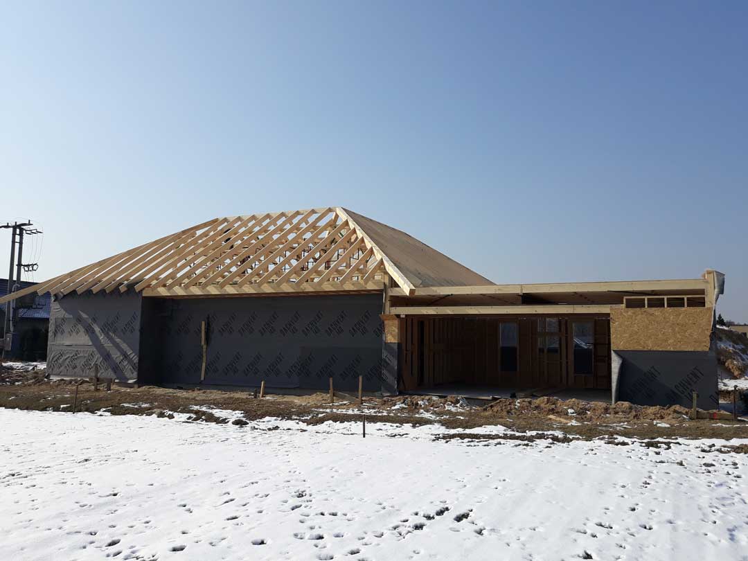 Projekt domu szkieletowego kanadyjskiego zakładał 4 pokoje, duży salon z otwartą kuchnią, 2 łazienki, pomieszczenie gospodarcze oraz garaż dwustanowiskowy. Budowa domu w stanie deweloperskim została zakończona w roku 2019 . Dom szkieletowy drewniany kanadyjski był wzorowany projektem domu homekoncept 26