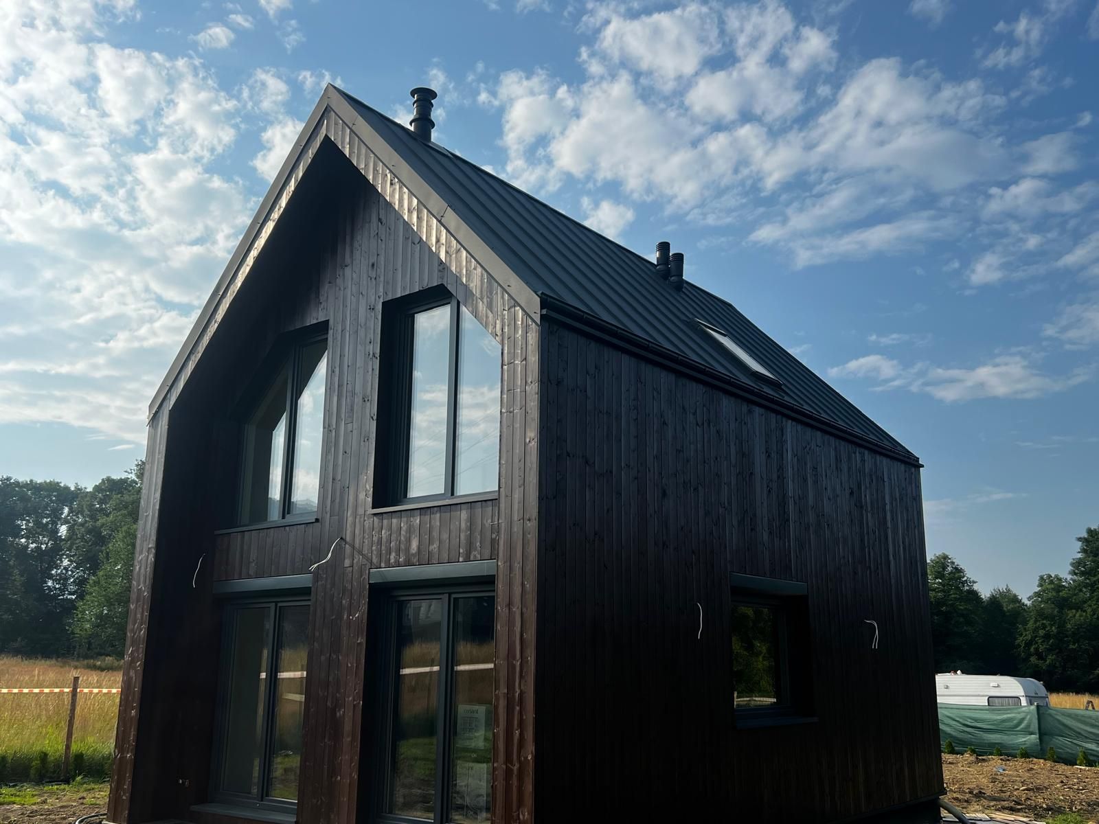 Galeria zdjęć Więcej zdjęć Opis projektu Inwestycja obejmowała wybudowanie domu szkieletowego parterowego o metrażu 117,55 m2 w Zabytkowie. Projekt domu zakładał 3 pokoje i łazienkę....