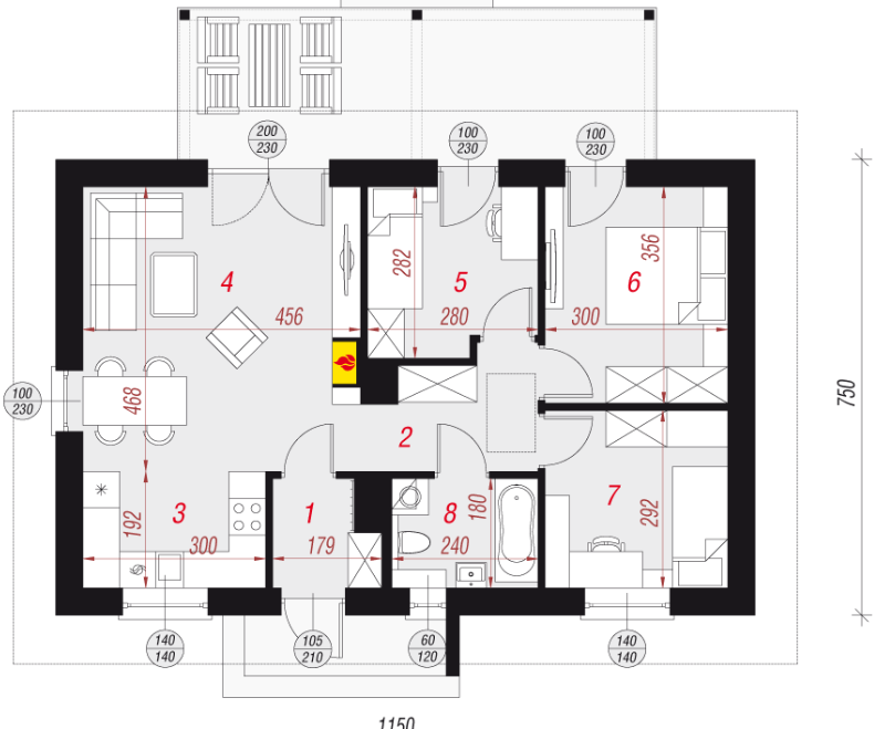Funkcjonalnie zaprojektowane wnętrze zaspokoi potrzeby rodziny, gwarantując możliwość niezależnego użytkowania części dziennej i nocnej.