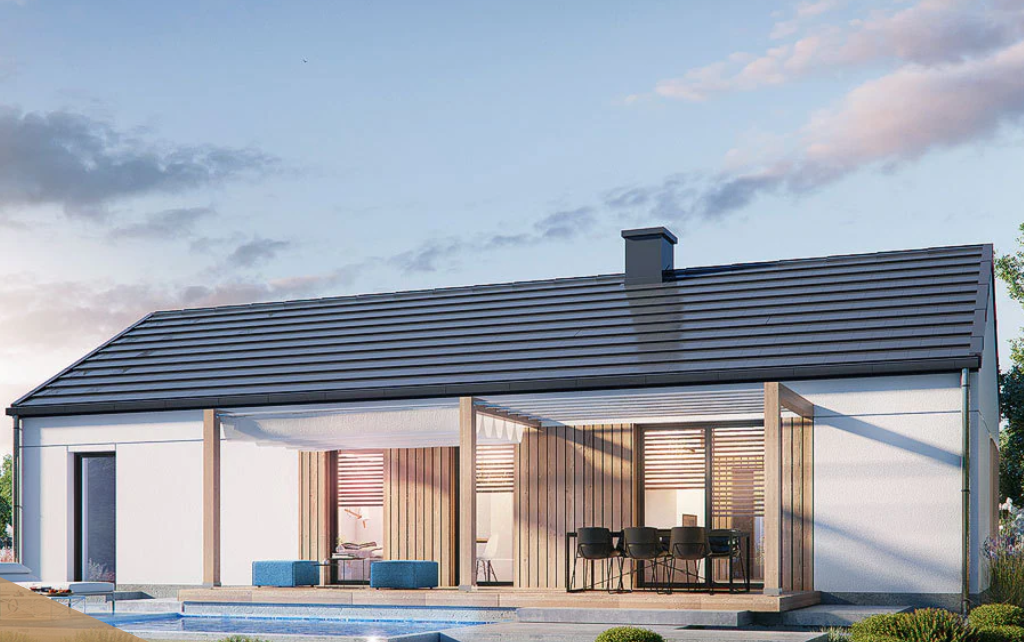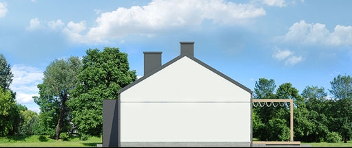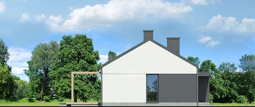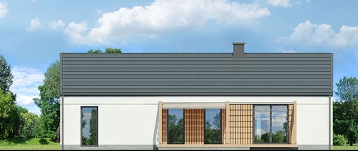 Ekonomiczny w budowie projekt małego domu parterowego, z prostą w realizacji bryłą oraz funkcjonalnym układem wnętrz.