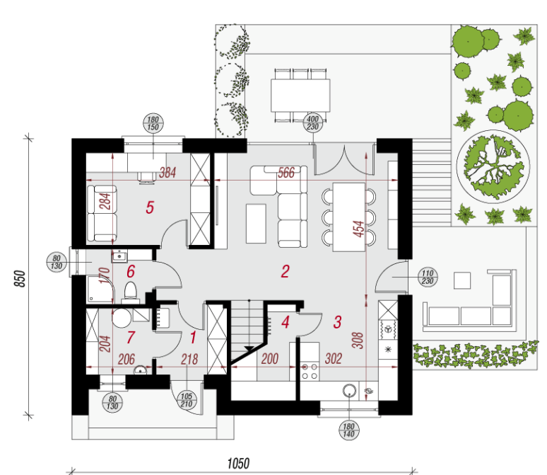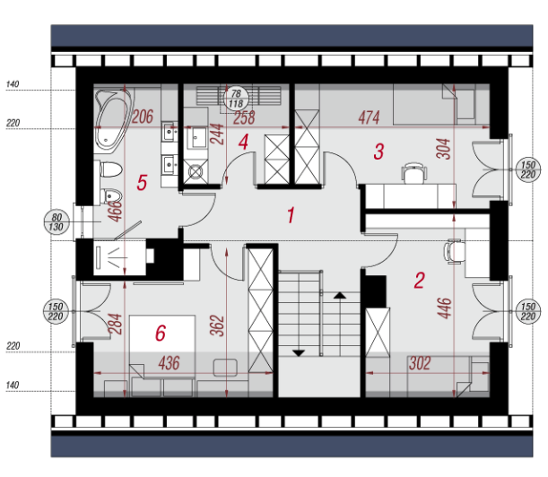 Dom w Malinówkach 11 to projekt domu z poddaszem użytkowym, który charakteryzuje się bardzo atrakcyjnym stosunkiem wielkości domu do ceny. Optymalny metraż powierzchni domu 132,33m2, dla 4 osobowej rodziny. Projekt domu w Malinówkach 11 zakłada Duży salon z jadalnią, otwartą kuchnią i spiżarnią, 1 dodatkowy pokój, kotłownia i WC na parterze. Na poddaszu natomiast znajdują się 3 pokoje, duża łazienka oraz pralnia.
