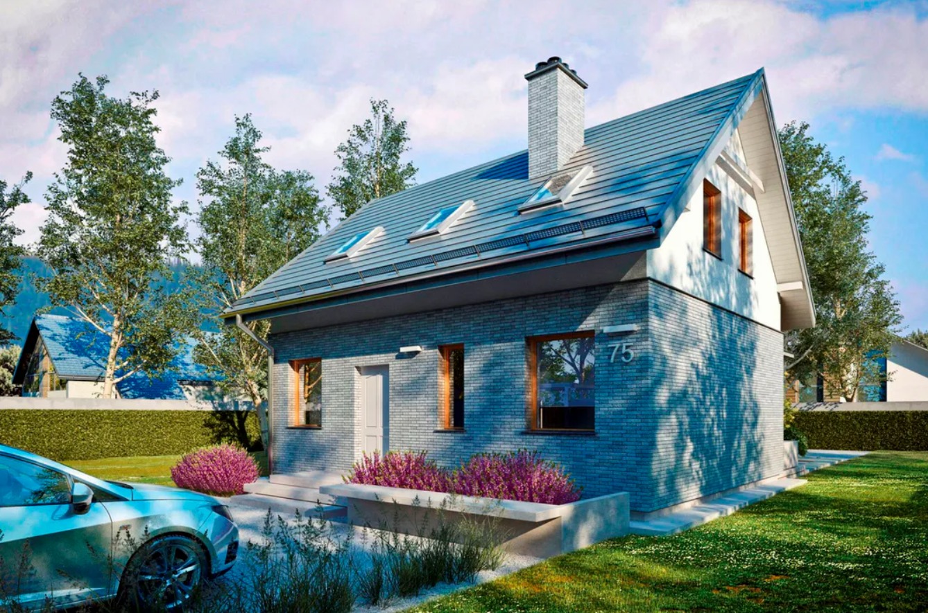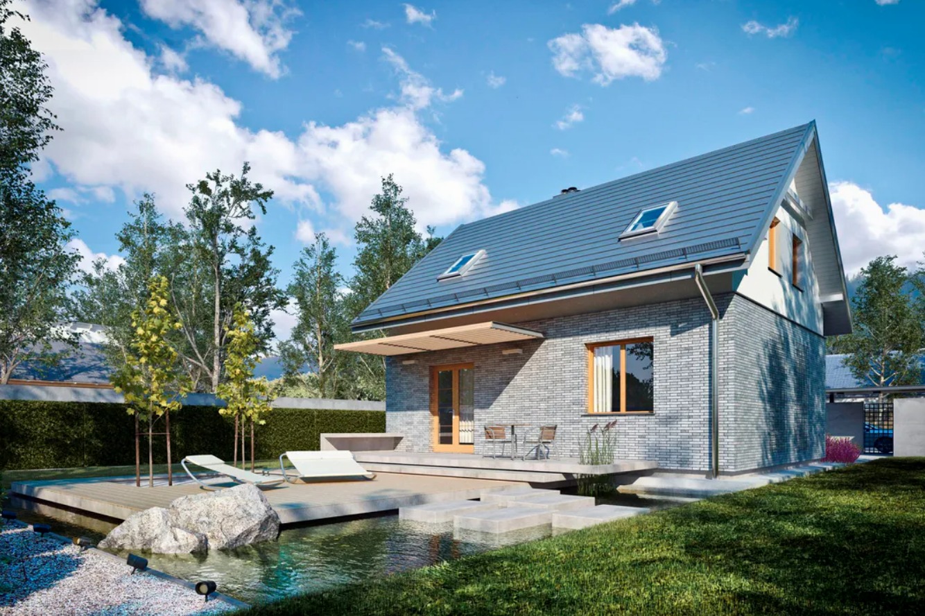 Projekt domu w technologii drewnianej szkieletowej.