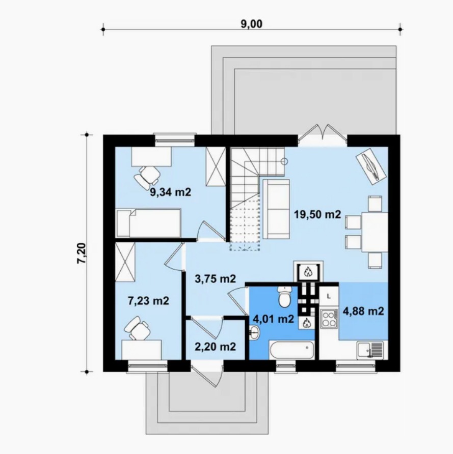 | Styl domu: | Do 70m zabudowy, Nowoczesny, Wygodny |