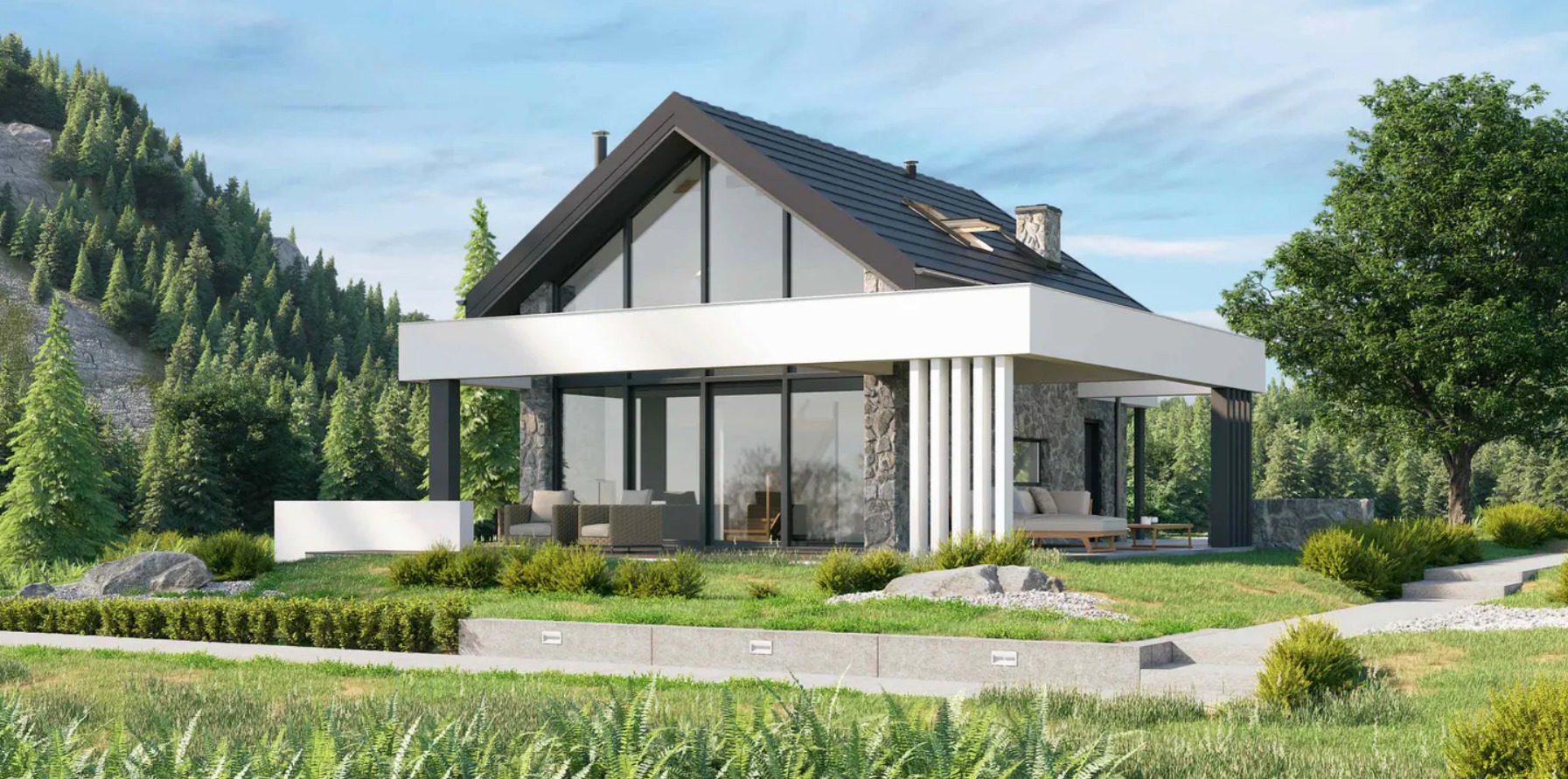 Galeria zdjęć Więcej zdjęć Opis projektu Inwestycja obejmowała wybudowanie domu szkieletowego parterowego o metrażu 117,55 m2 w Zabytkowie. Projekt domu zakładał 3 pokoje i łazienkę....