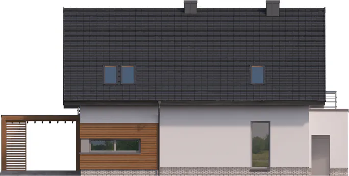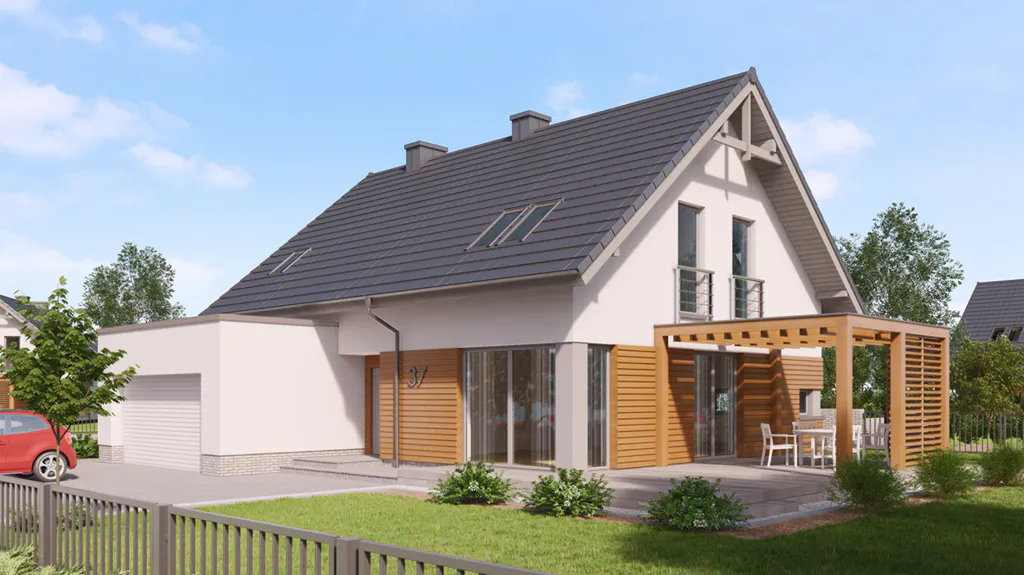 Projekt domu w technologii drewnianej szkieletowej.