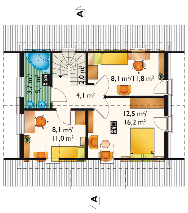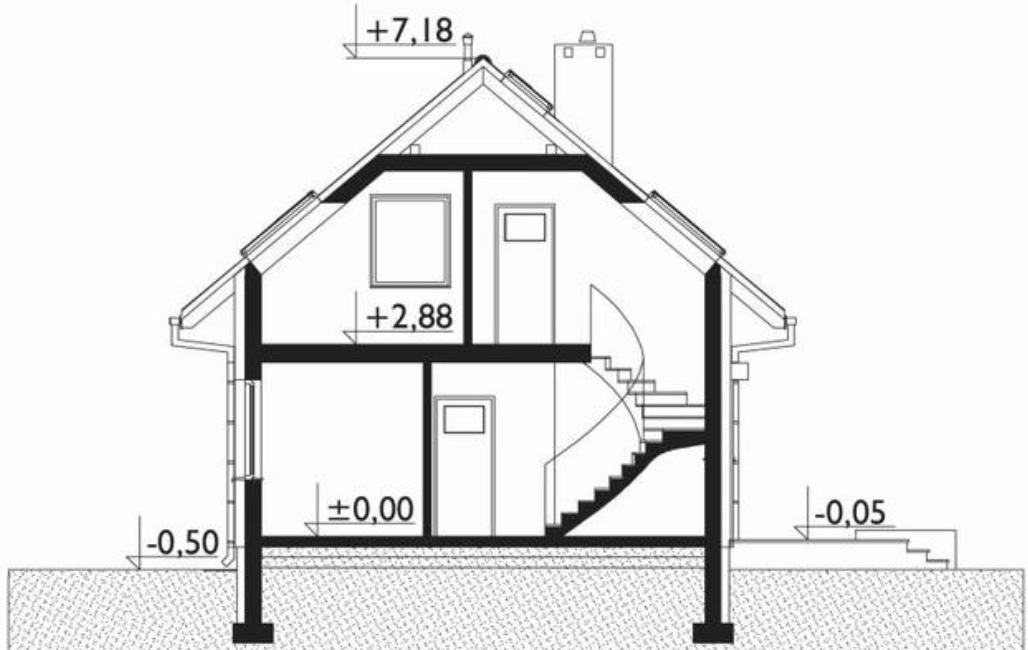Klasyczna bryła budynku pozwala na zmniejszenie całkowitych kosztów budowy względem bardziej „wymyślnych” konstrukcji. Duża strefa dzienna pozwala w komfortowych warunkach prowadzenie życia rodzinnego. Natomiast strefa sypialniana to dwa niezależne pokoje.
