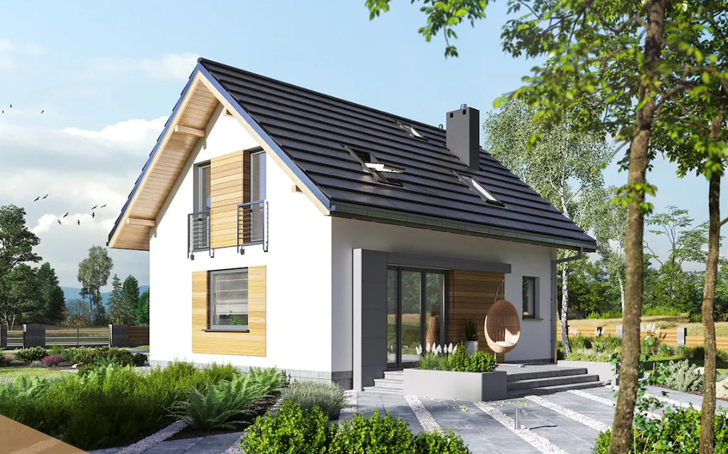 Projekt domu, który spełnia potrzeby nawet 4 osobowej rodziny. Wyglądem nawiązuje do stylu nowoczesnego i idealnie wpisze się w trendy nowo powstających osiedli