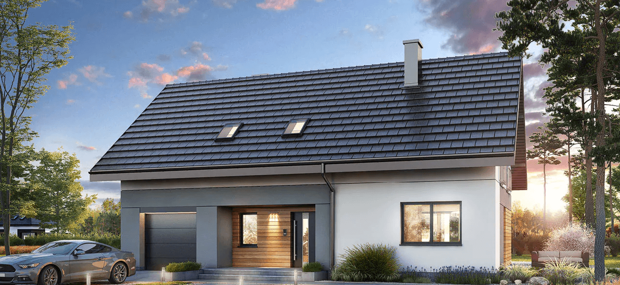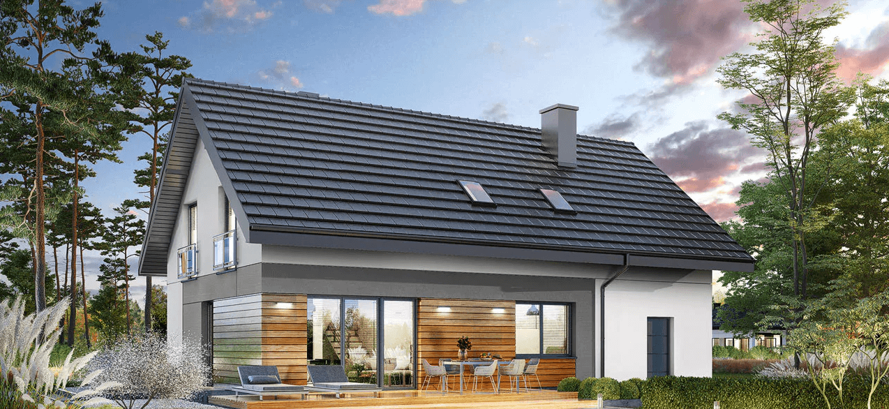 MDDOM 132 Z WIATĄ to energooszczędny dom budowany w technologii szkieletowej MDDOM®.