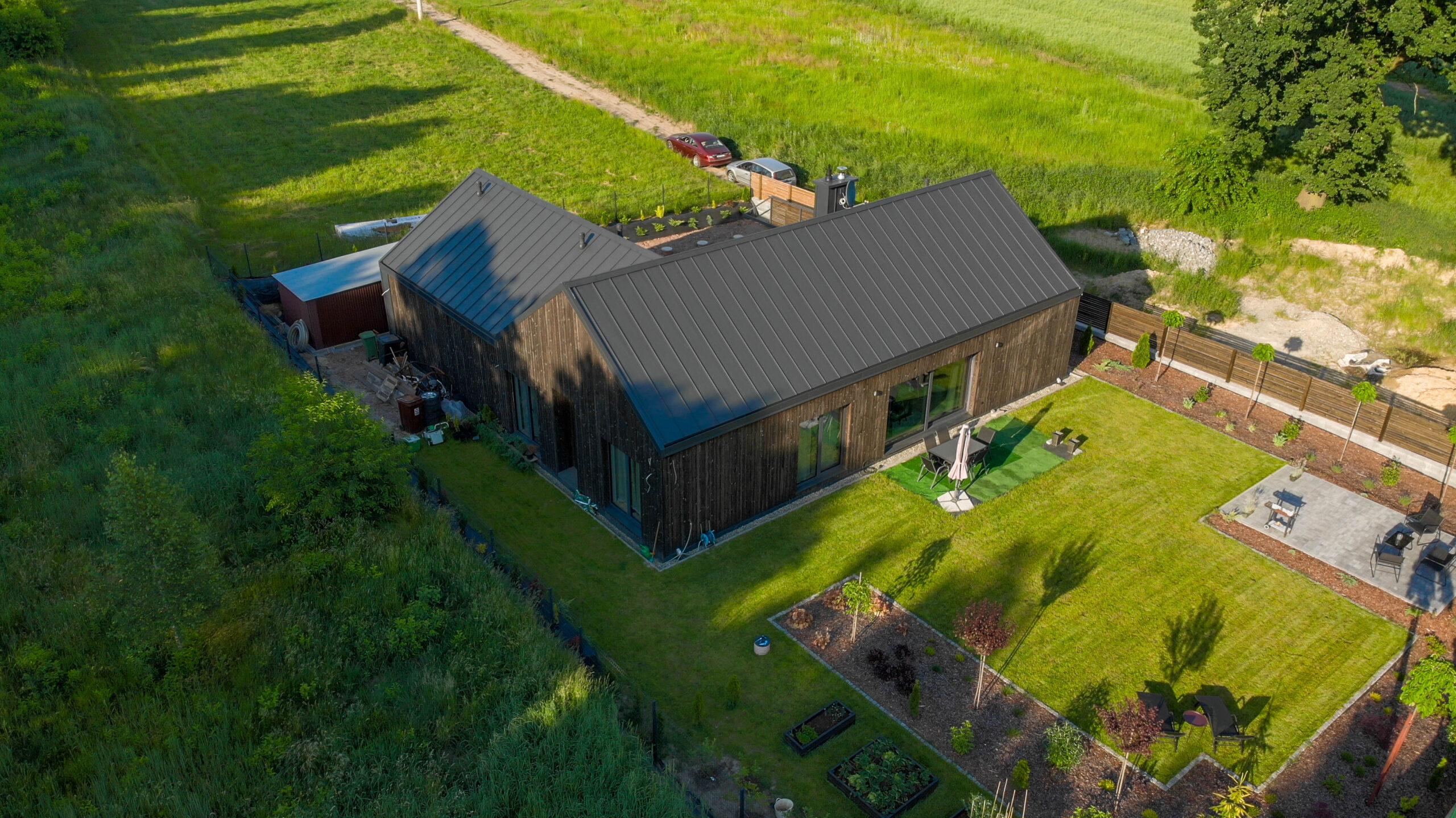 Jest to dom z poddaszem użytkowym w konstrukcji nowoczesnej stodoły, który jest ciekawą alternatywą dla mieszkania w bloku.