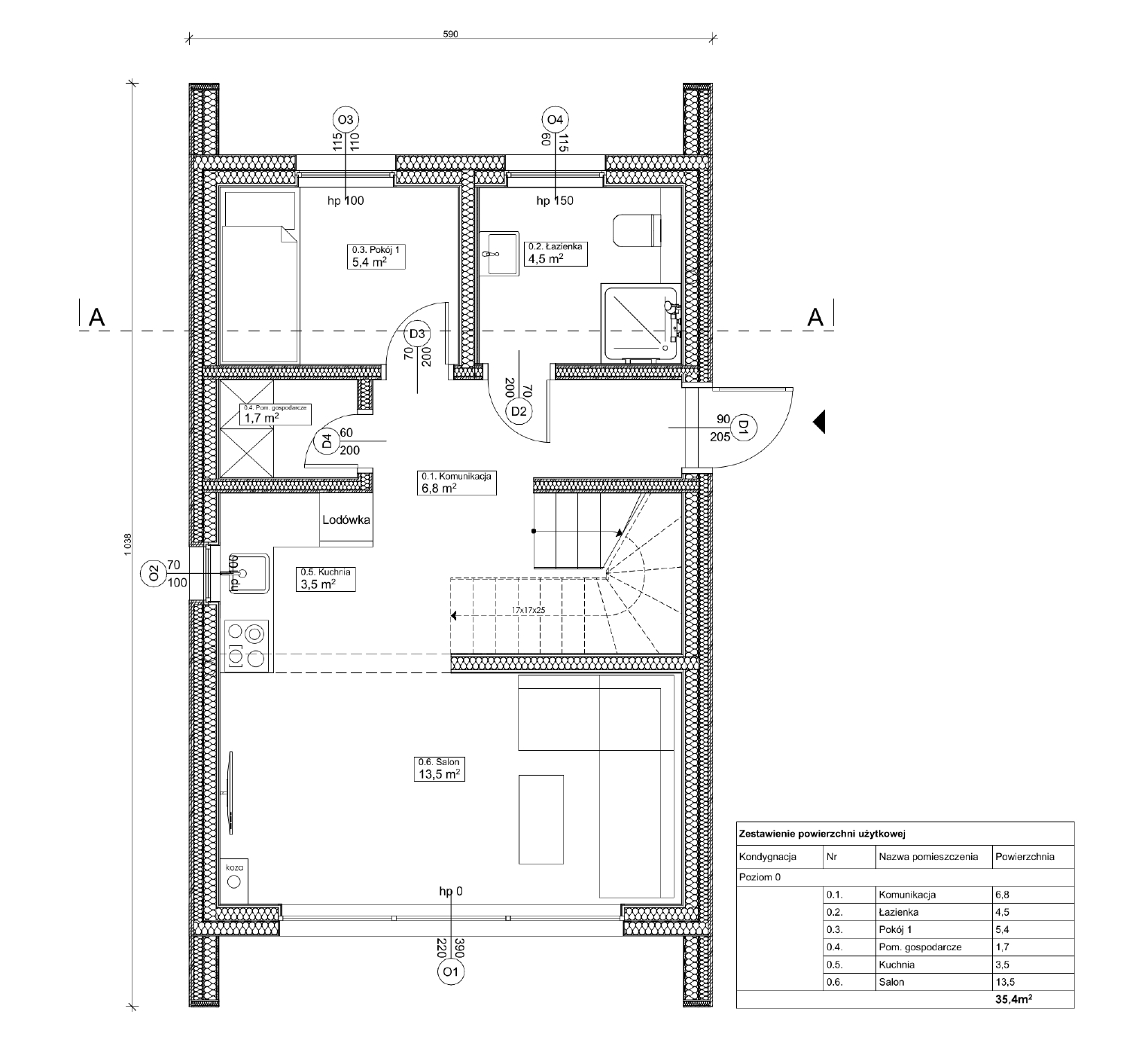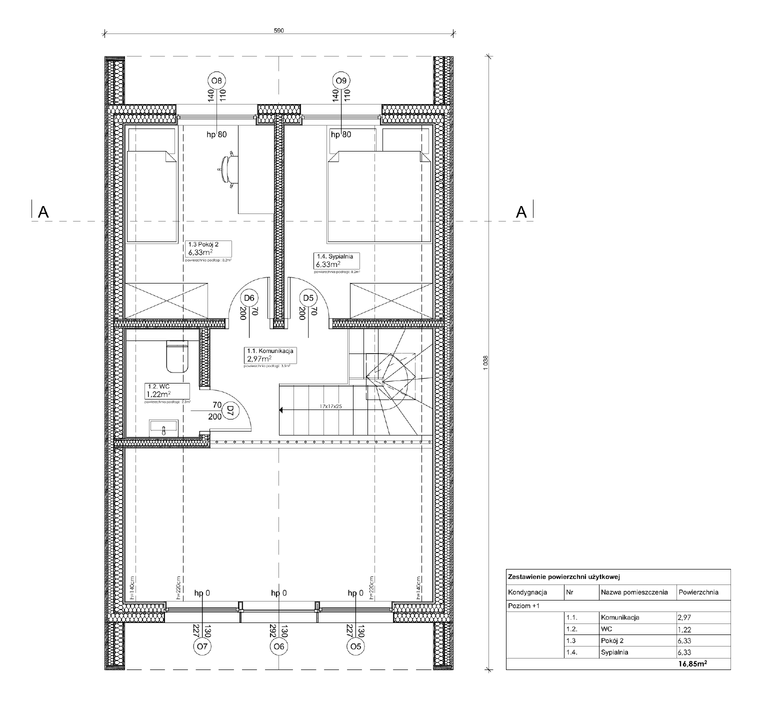 Wymiary zewnętrzne: 5,9 x 10,38 m