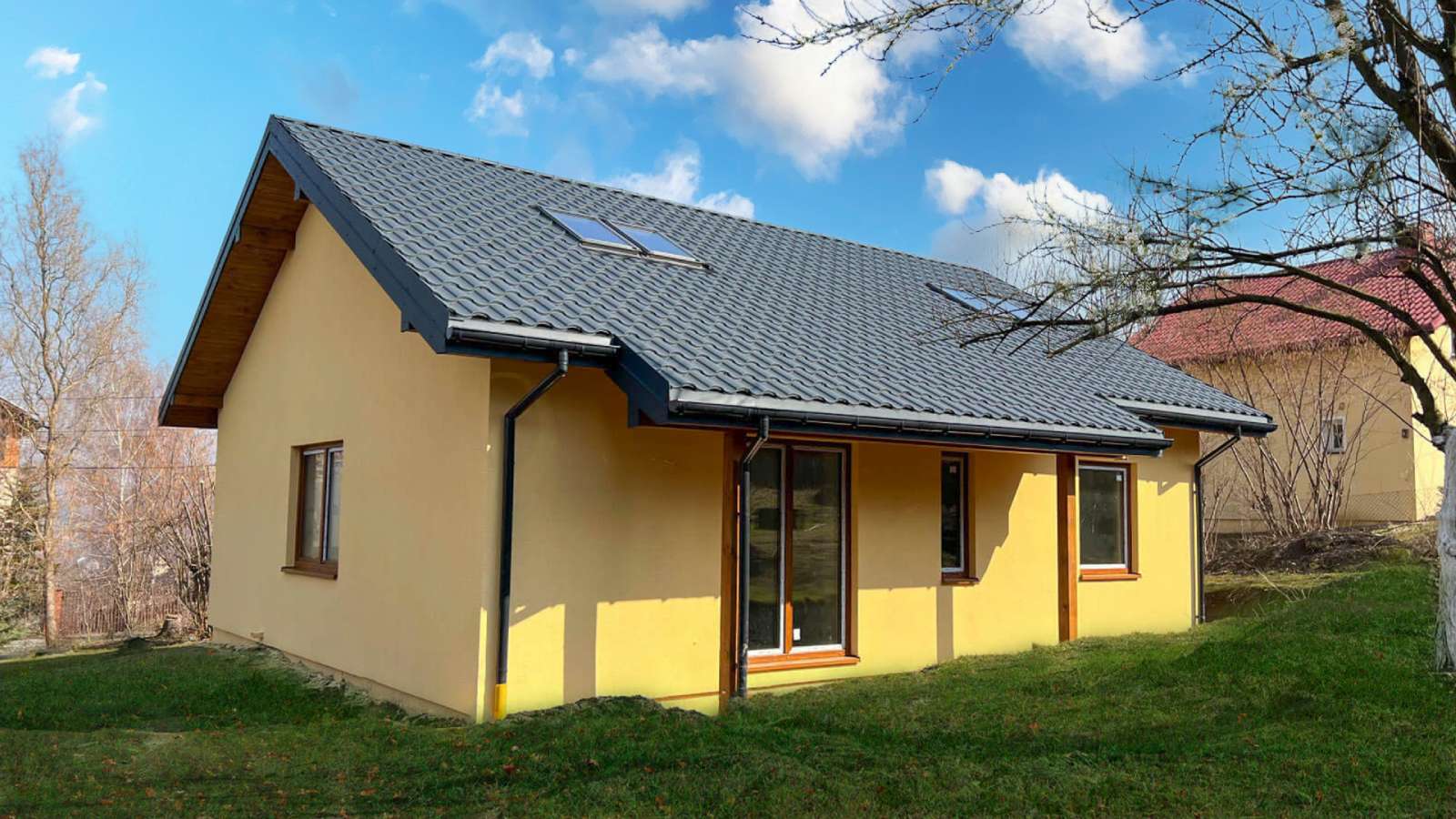 Galeria zdjęć Więcej zdjęć Opis projektu Inwestycja obejmowała wybudowanie domu szkieletowego parterowego o metrażu 117,55 m2 w Zabytkowie. Projekt domu zakładał 3 pokoje i łazienkę....