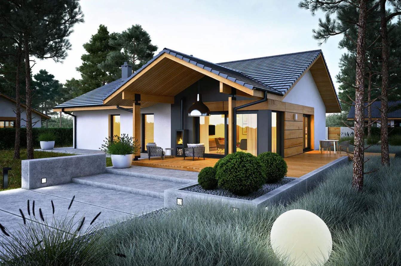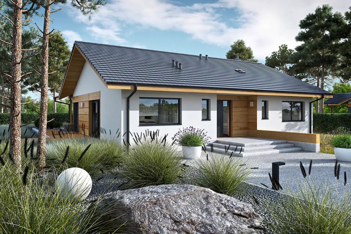 Galeria zdjęć Więcej zdjęć Opis projektu Inwestycja obejmowała wybudowanie domu szkieletowego parterowego o metrażu 117,55 m2 w Zabytkowie. Projekt domu zakładał 3 pokoje i łazienkę....