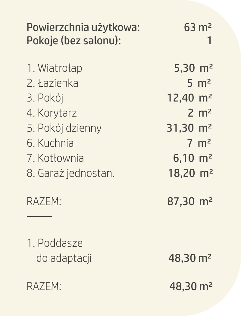 Powierzchnia użytkowa:63 m²