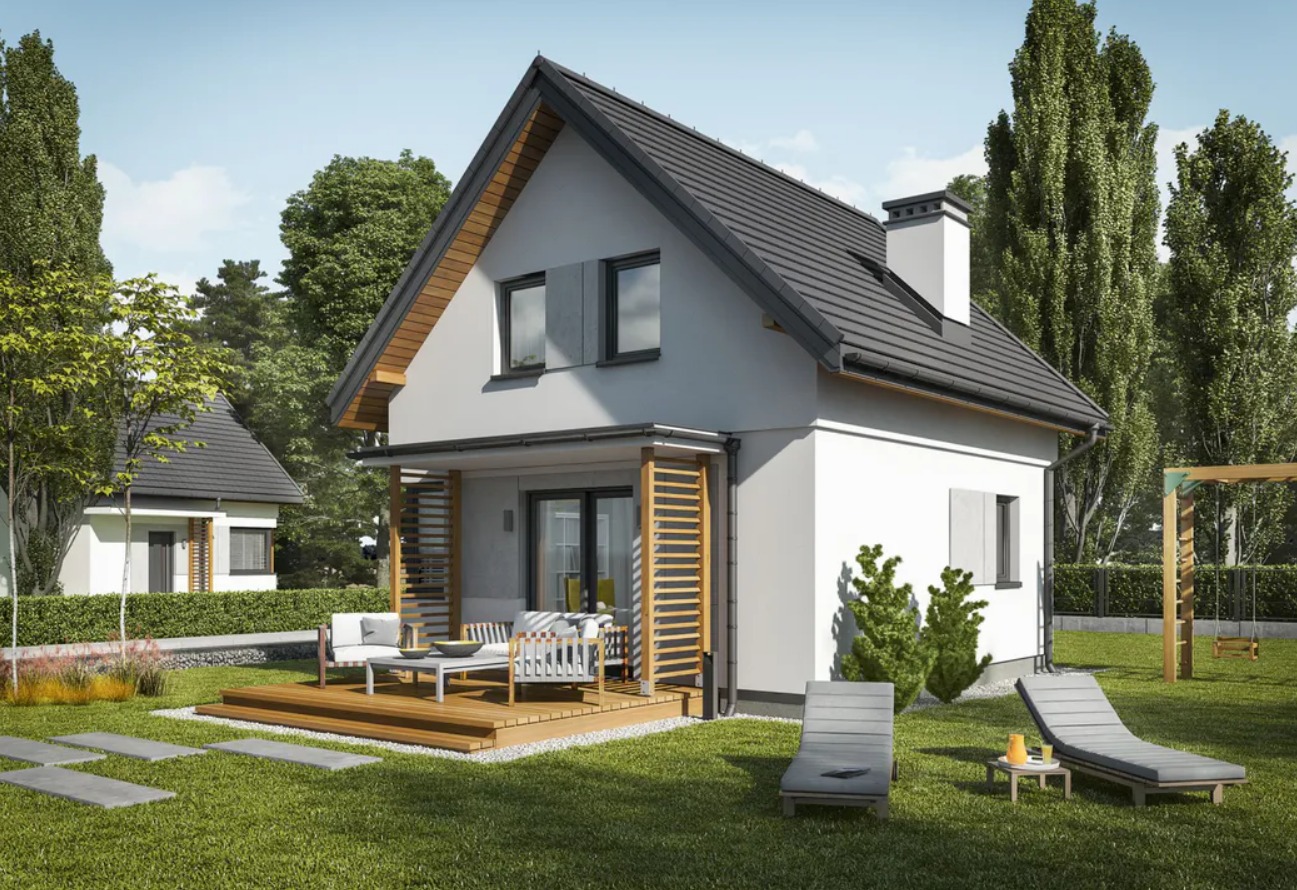 Dom Orlean 7 to projekt domu z poddaszem użytkowym, który charakteryzuje się bardzo atrakcyjną ceną za wybudowanie w stanie deweloperskim. Metraż  domu 69,7m2, mieści wszystko co potrzebne w tej kategorii domów.