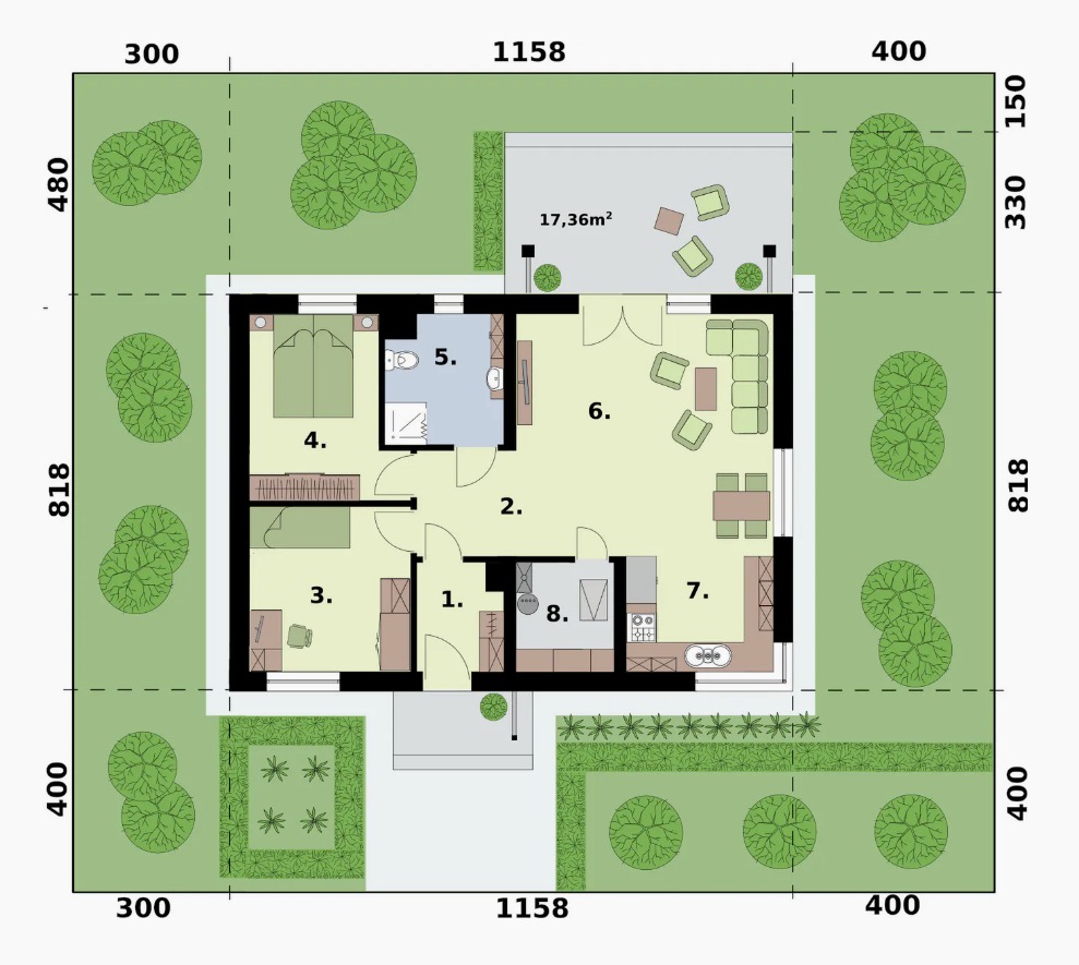 Galeria zdjęć Więcej zdjęć Opis projektu Inwestycja obejmowała wybudowanie domu szkieletowego parterowego o metrażu 82,65m2 w miejscowości Tworóg. Projekt domu zakładał 3 pokoje i łazienkę....