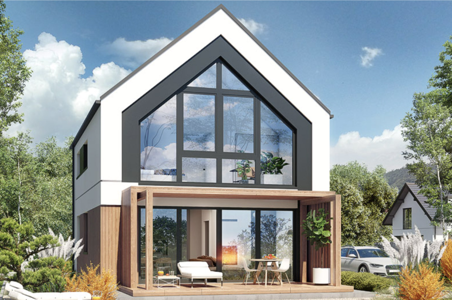 Projekt domu możliwy do wybudowania za zgłoszenie 70m2 na własny użytek. Dom w cienistkach 4 jest to dom w zabudowie do 70m2 oraz w typie nowoczesnej stodoły. Projekt domu w cienistkach 4 wyróżnia wysoka ścianka kolankowa na 2,20m. Powierzchnia domu po podłogach 102,45m2.