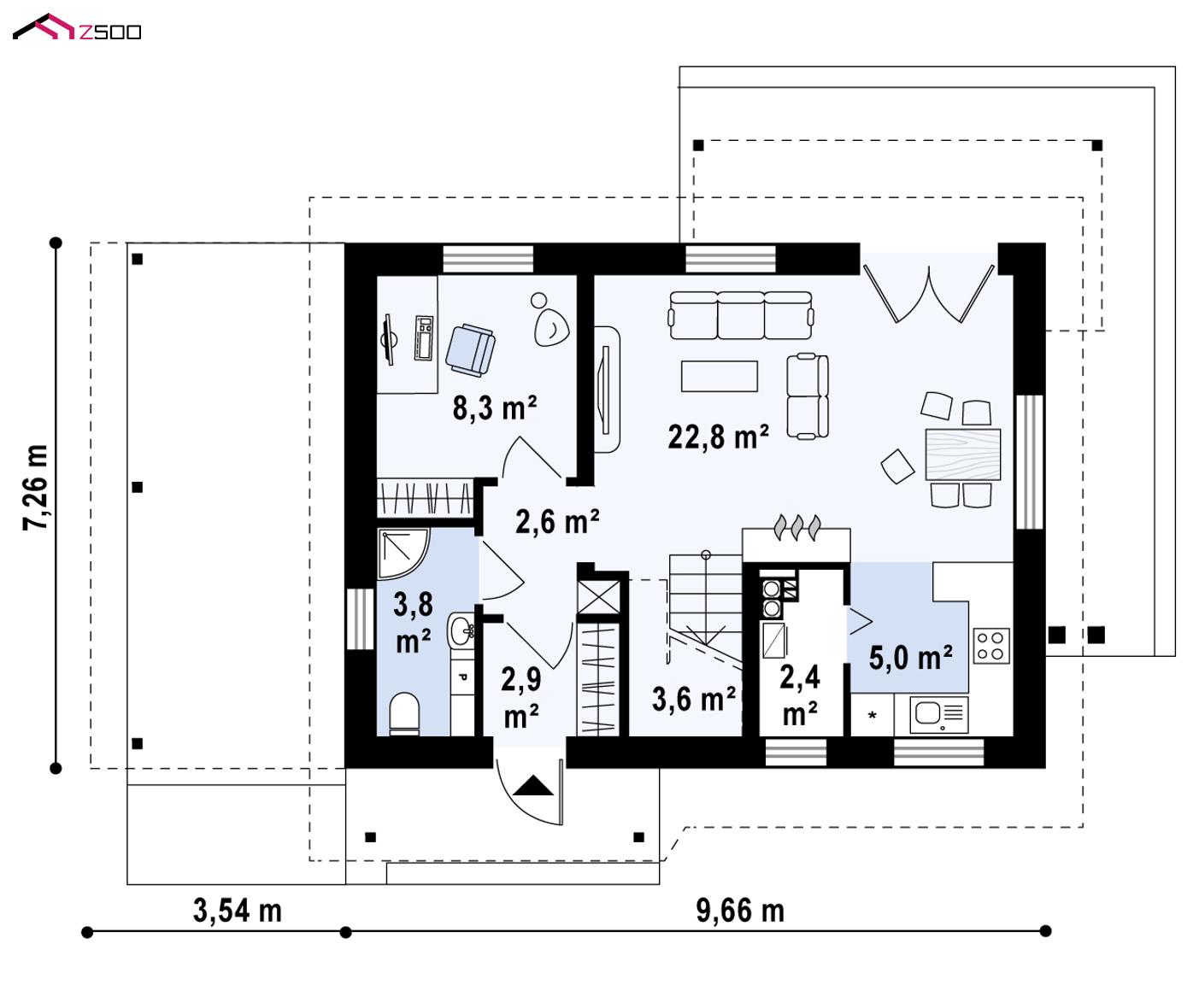 Galeria zdjęć Więcej zdjęć Opis projektu Inwestycja obejmowała wybudowanie domu szkieletowego parterowego o metrażu 117,55 m2 w Zabytkowie. Projekt domu zakładał 3 pokoje i łazienkę....