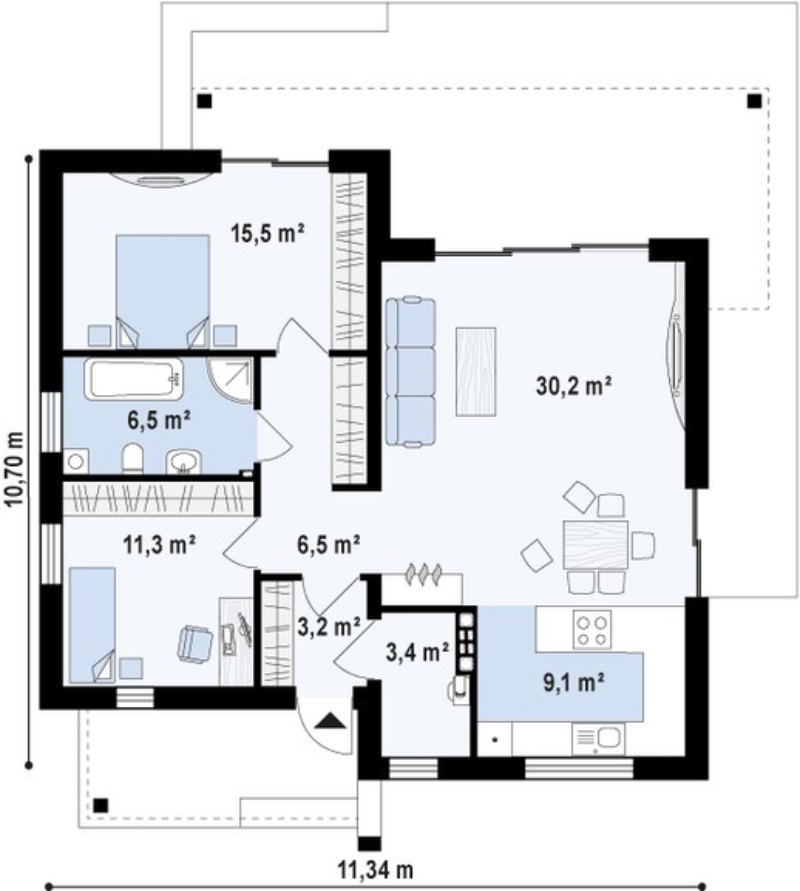 Galeria zdjęć Więcej zdjęć Opis projektu Inwestycja obejmowała wybudowanie domu szkieletowego parterowego o metrażu 117,55 m2 w Zabytkowie. Projekt domu zakładał 3 pokoje i łazienkę....