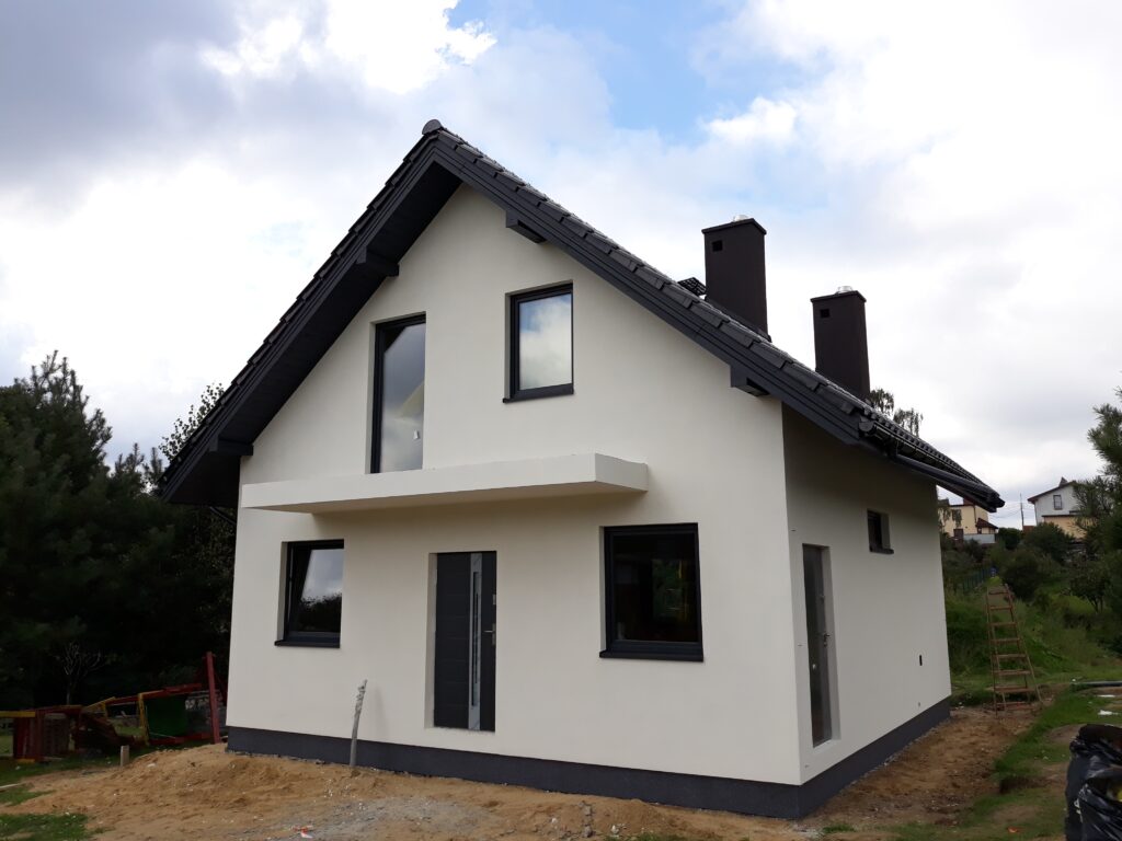 Galeria zdjęć Opis projektu Inwestycja obejmowała wybudowanie domu szkieletowego piętrowego o metrażu 105m2 w miejscowości Jaworzno. Projekt domu zakładał 3